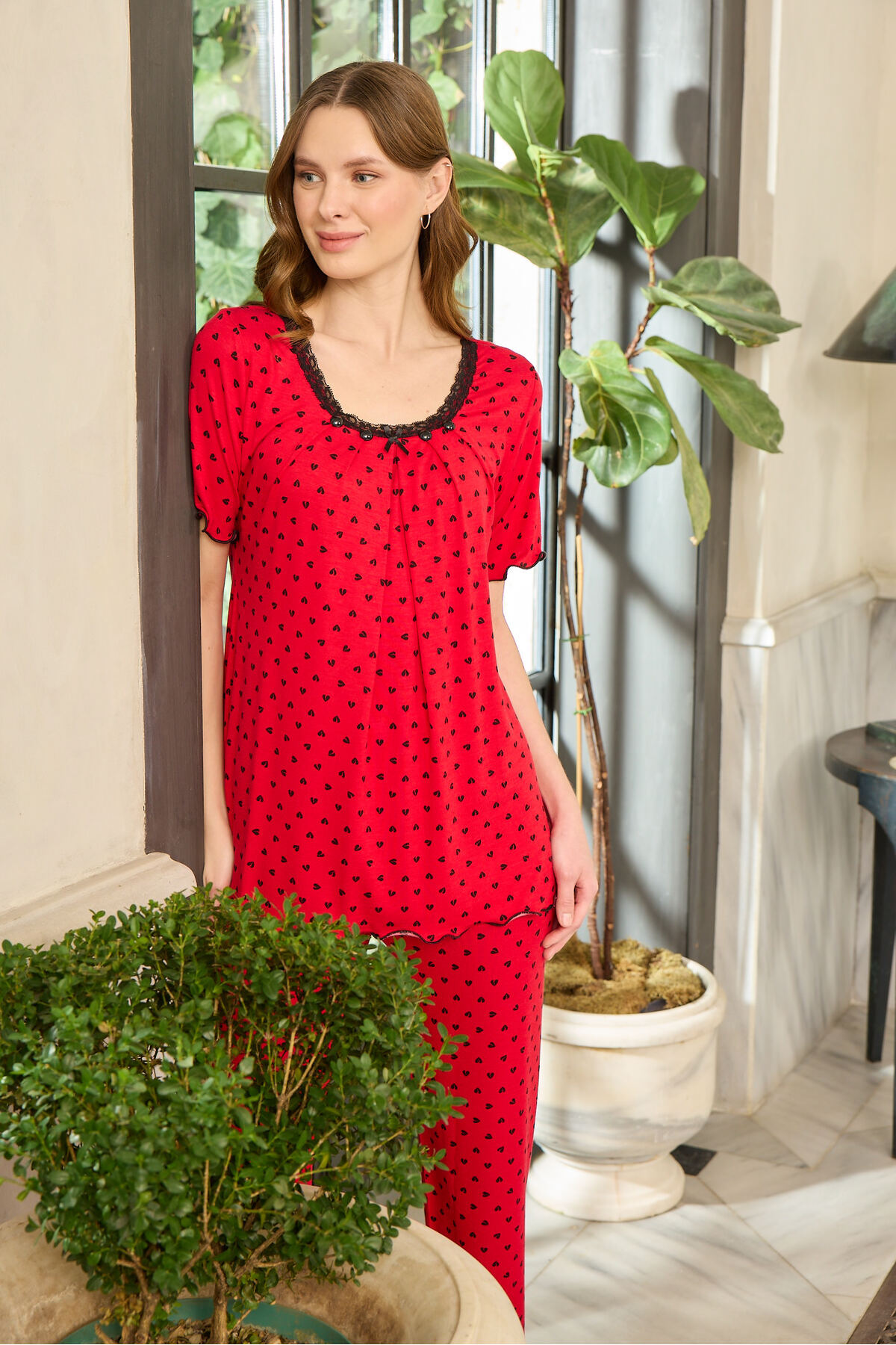 Leopar Desenli Bordo Ring Viskon Dantel Detaylı Kısa Kol Pijama Takım Leopar Desenli Bordo Ring Viskon Dantel Detaylı Kısa Kol Pijama Takım 2001 2XL