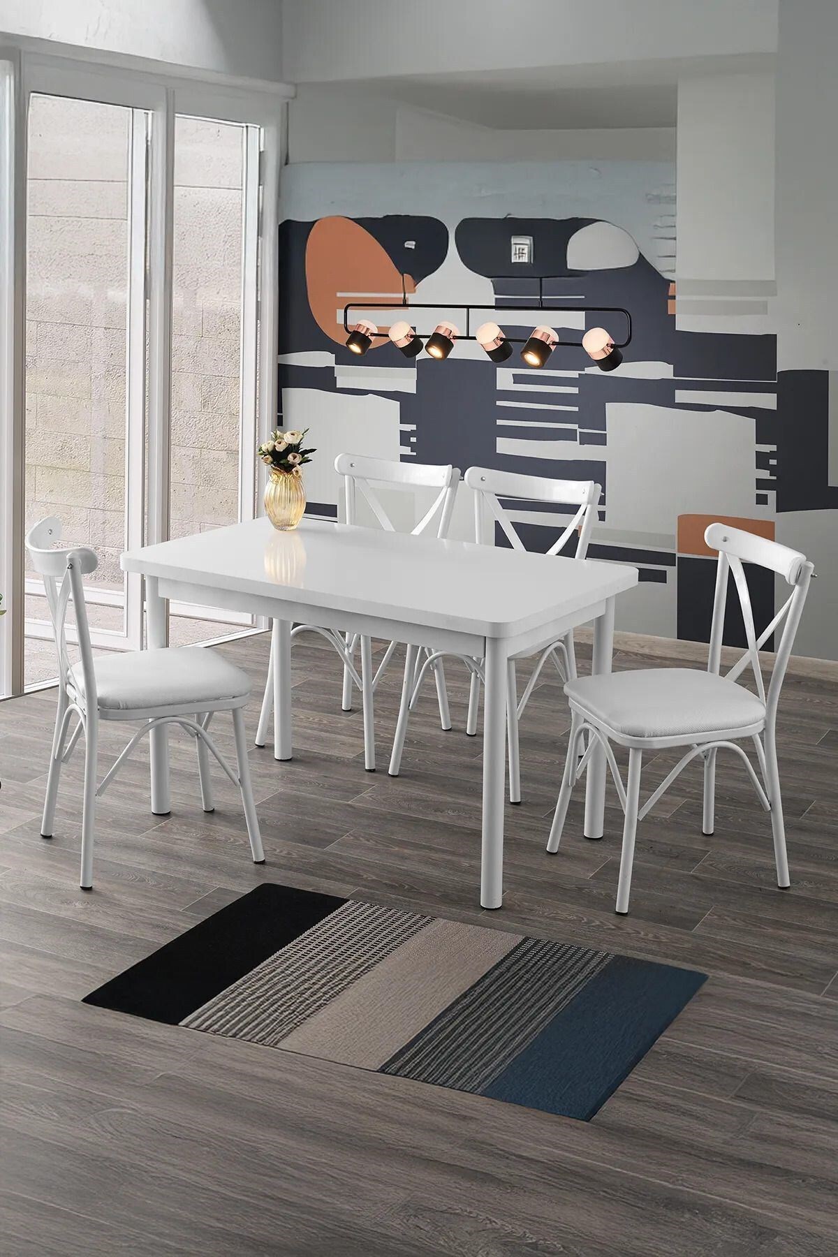 Kora Serisi 70x110 Sabit Mutfak Masası Takımı 4 Beyaz Sandalye Kora Serisi 70x110 Sabit Mutfak Masası Takımı 4 Beyaz Sandalye KORASERİSİ تک سایز
