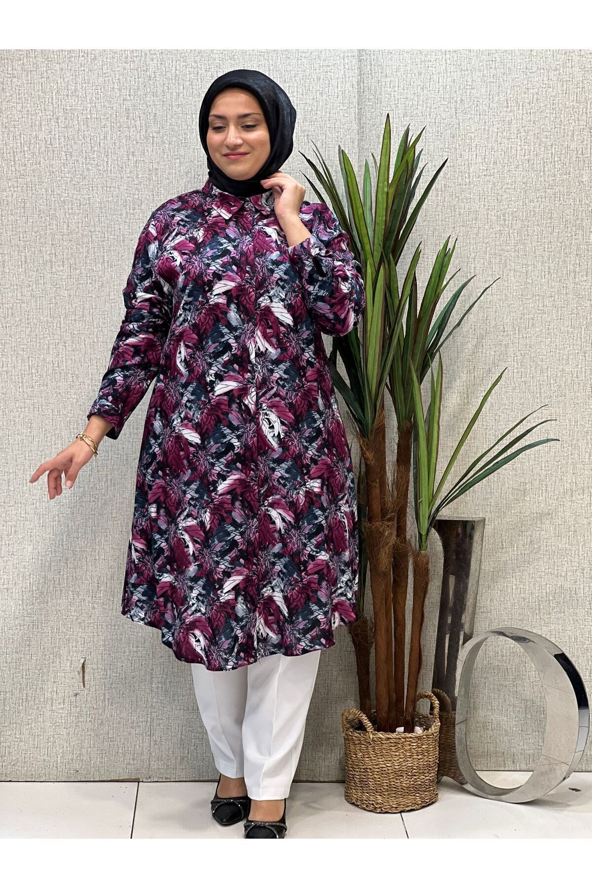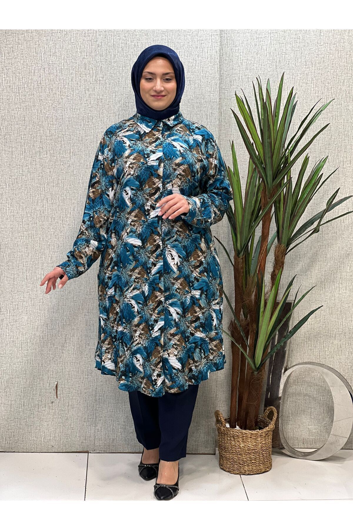 F-53016 Büyük Beden Kolu Lastikli Taş Baskılı Keten Tunik - İndigo F-53016 Büyük Beden Kolu Lastikli Taş Baskılı Keten Tunik - İndigo 9XL
