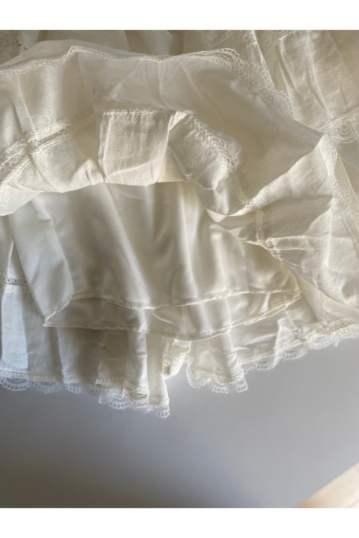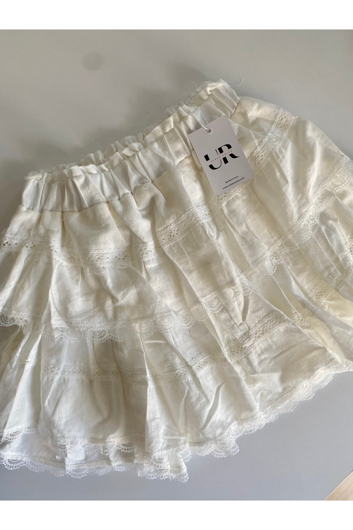 Katlı dantelli keten Ekru şort etek Katlı dantelli keten Ekru şort etek katlı L