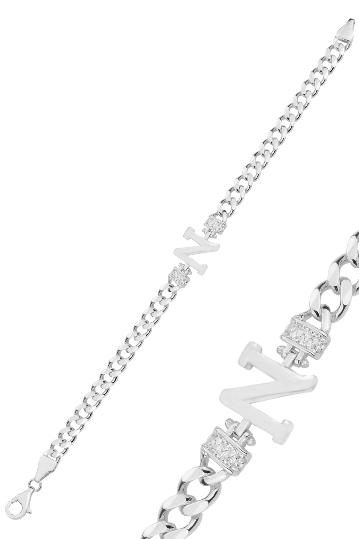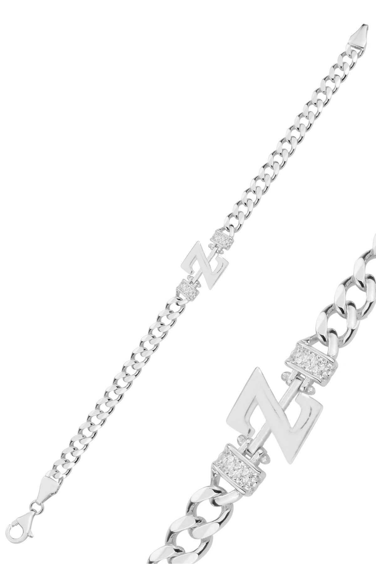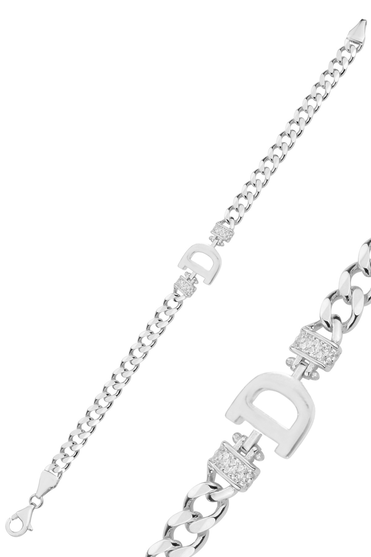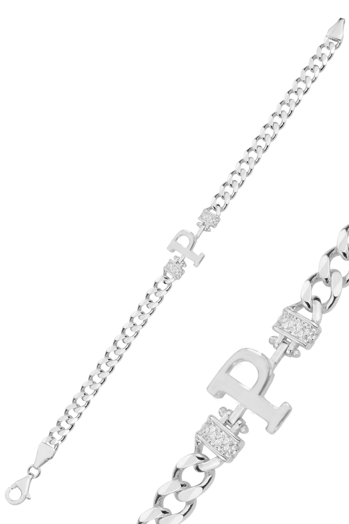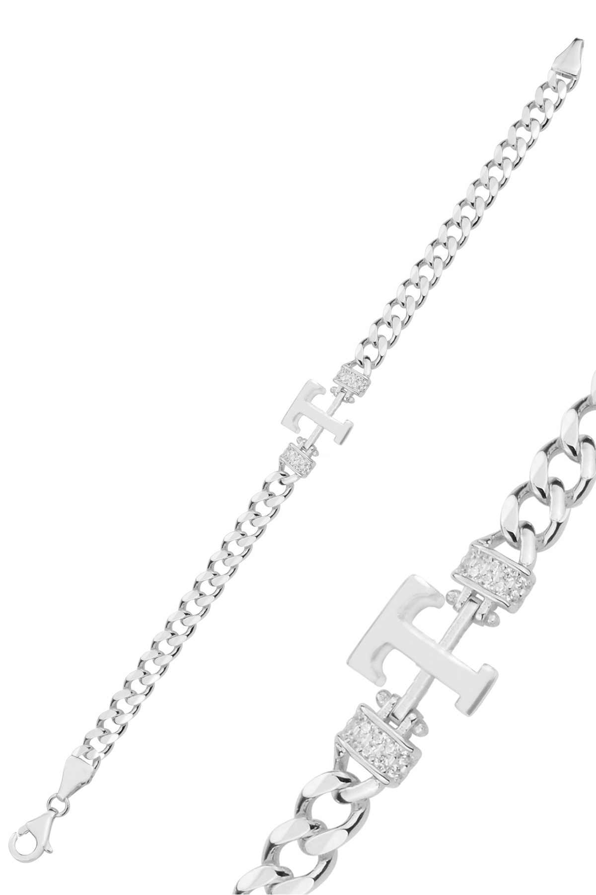 Gümüş rodyumlu zirkon taşlı üç boyutlu gurmet zincirli H harf bileklik Gümüş rodyumlu zirkon taşlı üç boyutlu gurmet zincirli H harf bileklik SGTL12883 تک سایز