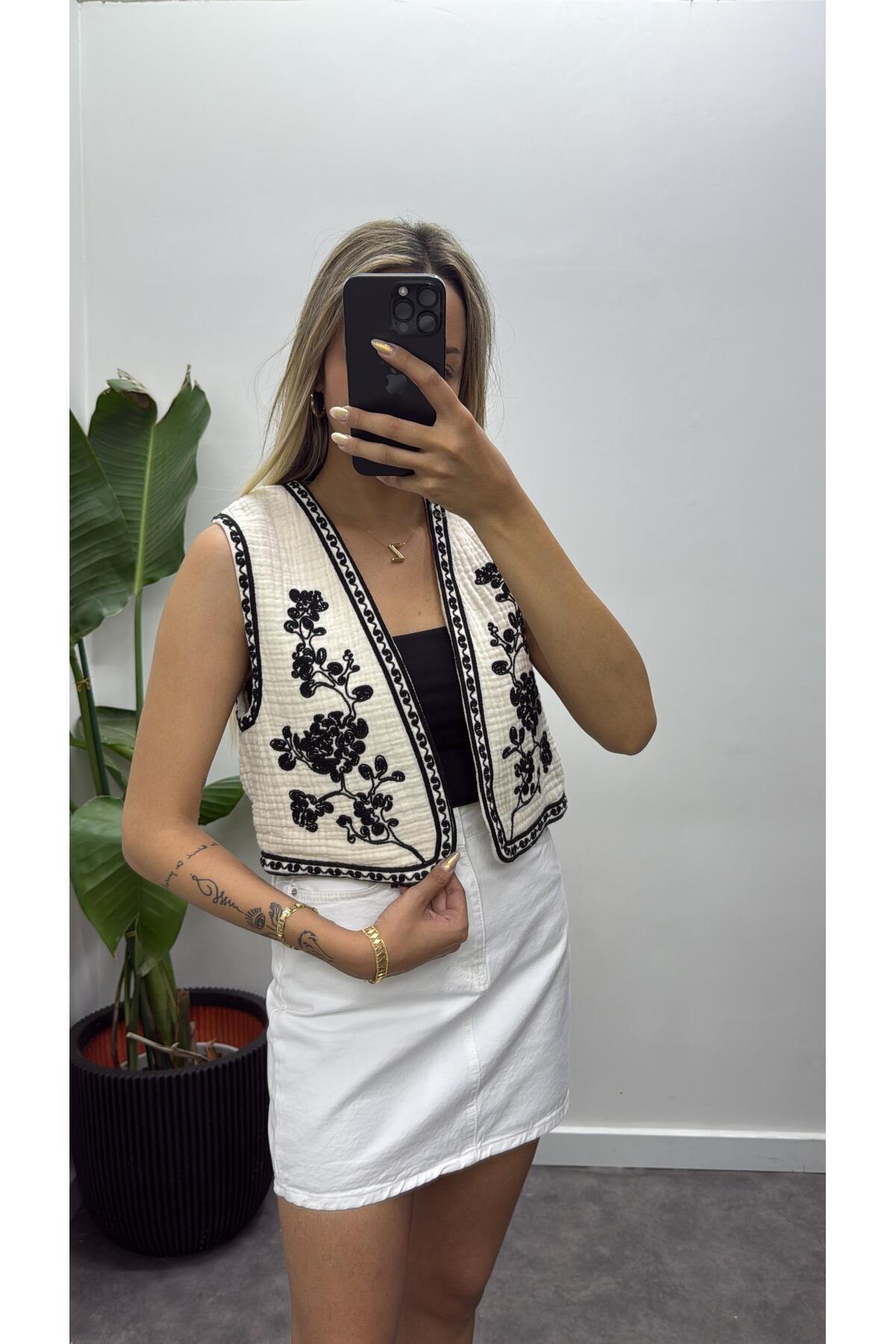 Müslin Etnik Desen Yelek Müslin Etnik Desen Yelek 0643KRL2525Y01 L