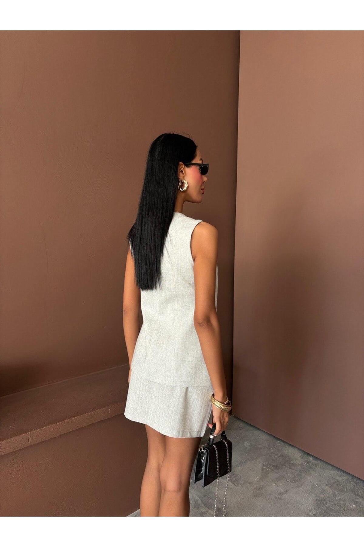 Gold Düğme Detay Yelek ve Etek Takımı Gold Düğme Detay Yelek ve Etek Takımı Lili25 XL