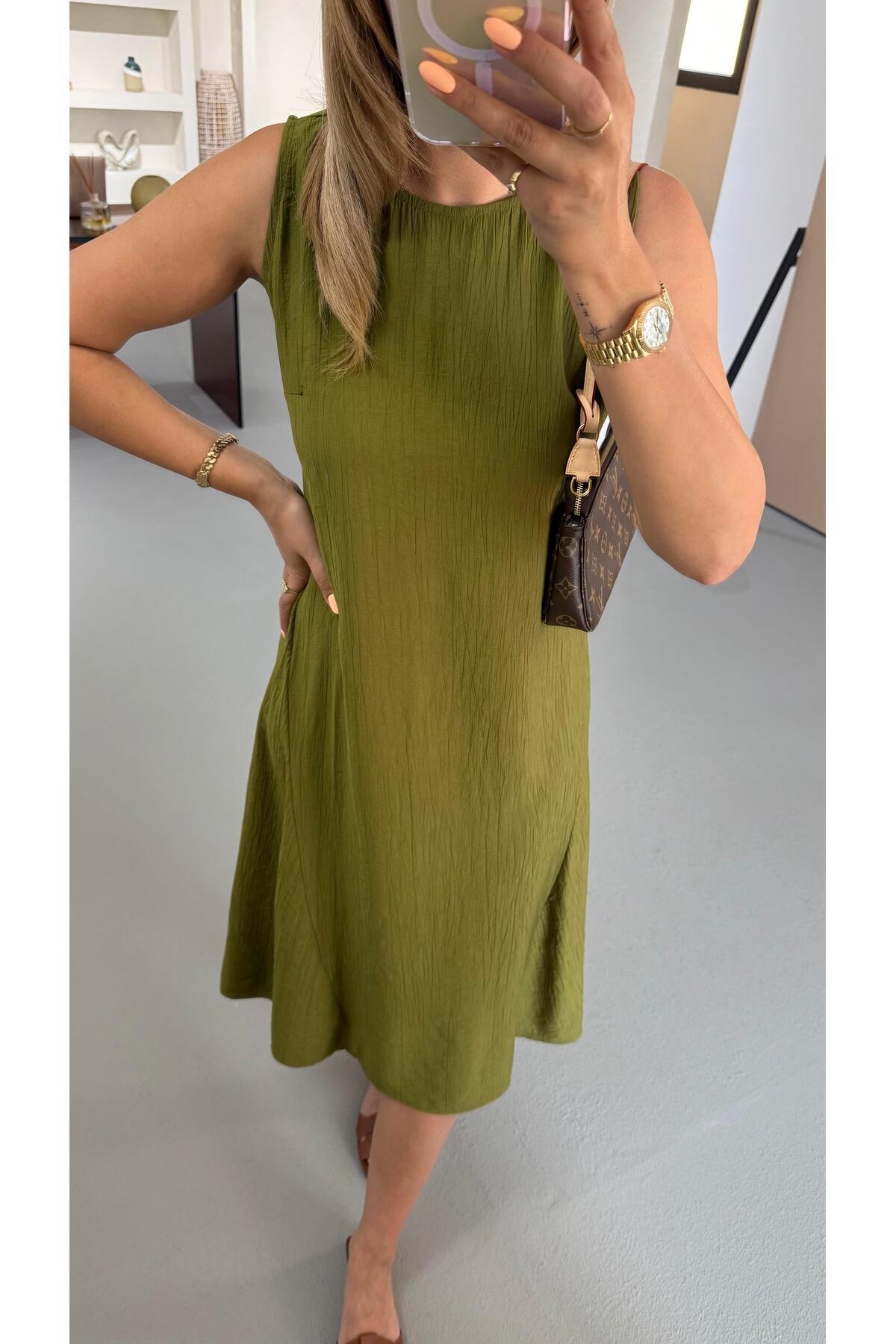 Kırınkıl Doku Olive Midi Elbise Kırınkıl Doku Olive Midi Elbise ELB-0697-OLV L