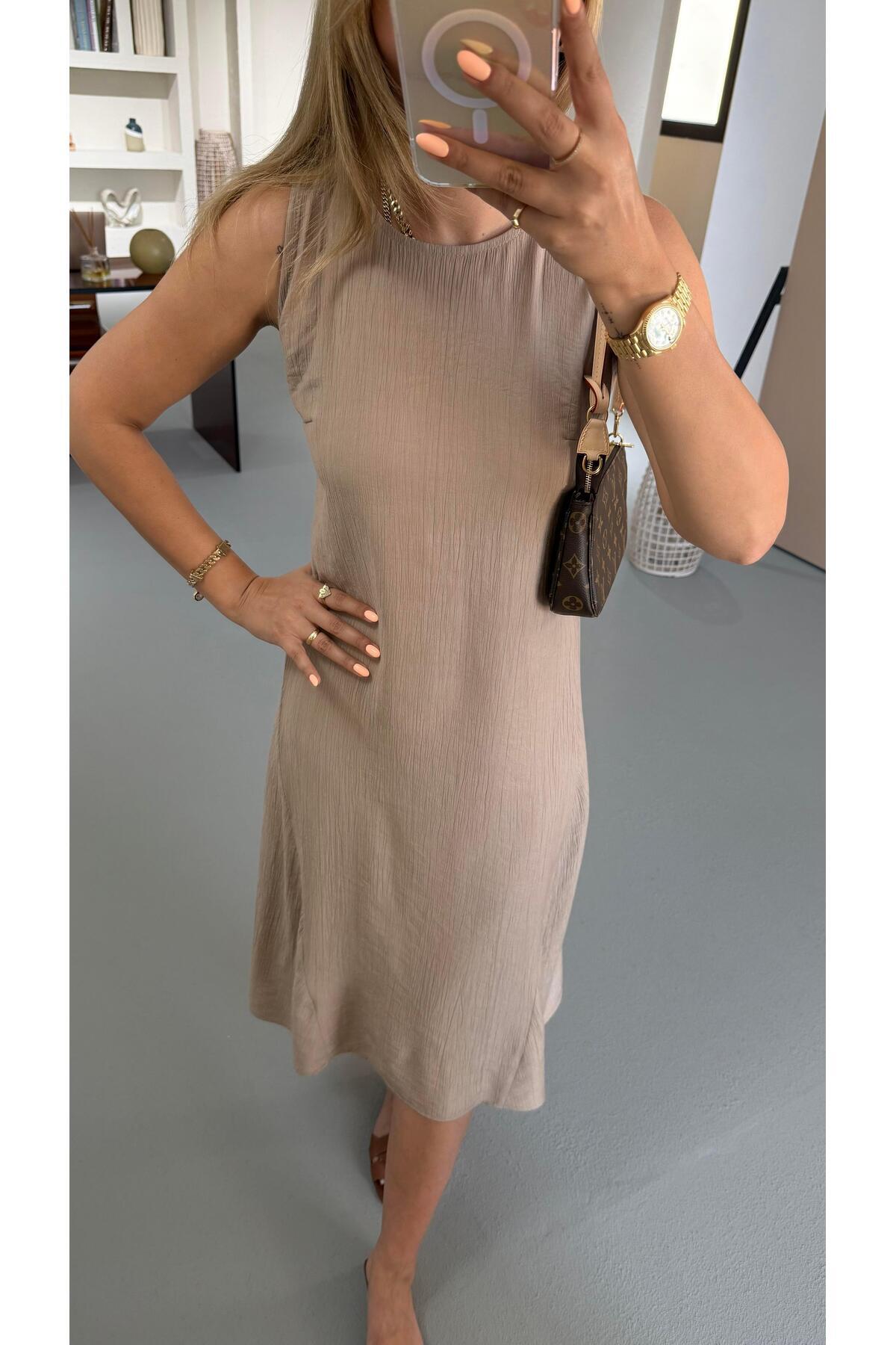 Kırınkıl Doku Vizon Midi Elbise Kırınkıl Doku Vizon Midi Elbise ELB-0697-VZN L