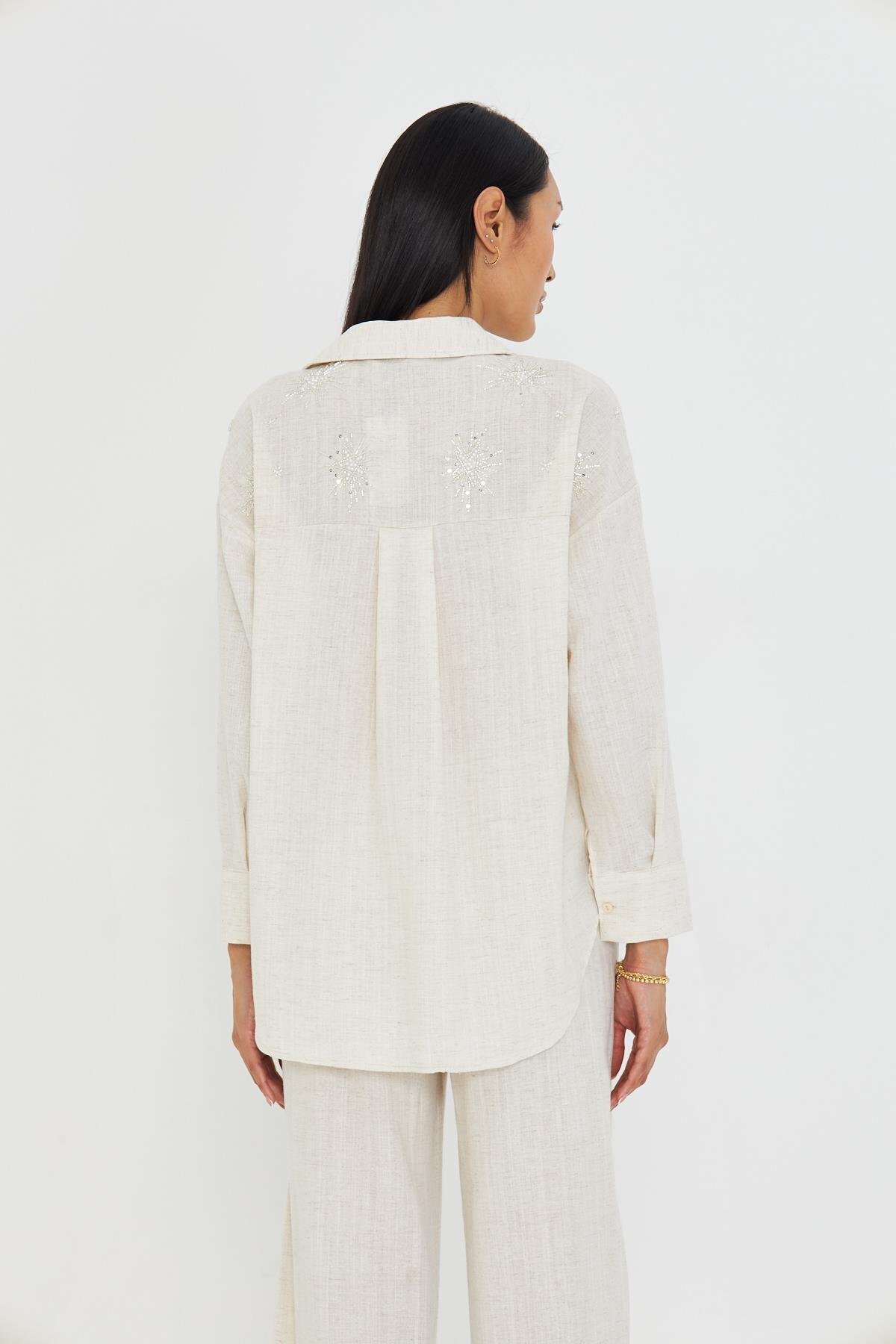 Boncuk Nakışlı Keten Görünümlü Gömlek Boncuk Nakışlı Keten Görünümlü Gömlek GML0312Y XL