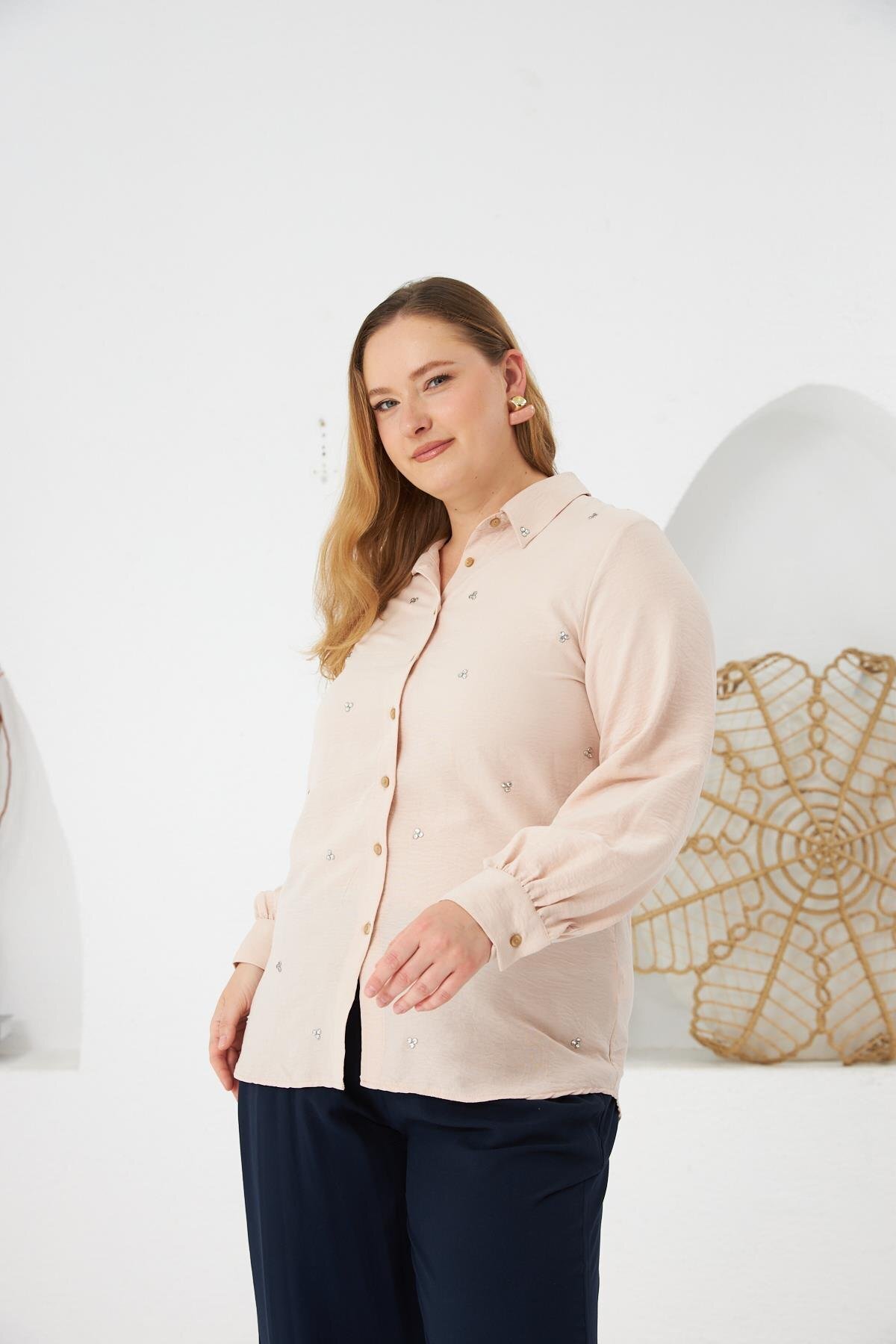Büyük Beden Taş Detay Gömlek Krem Büyük Beden Taş Detay Gömlek Krem o6716 54