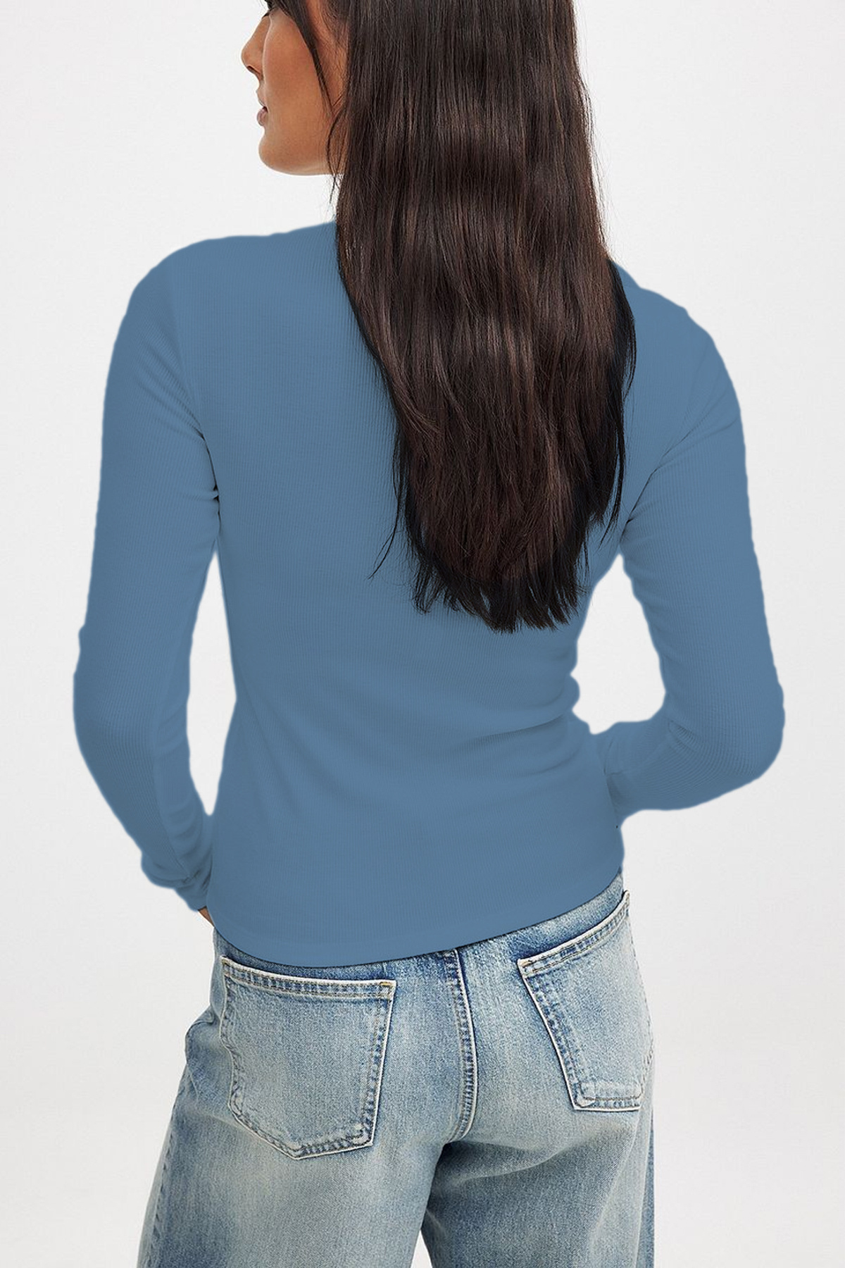 Kadın Açık İndigo Uzun Kollu Bisiklet Yaka T-shirt Bluz Kaşkorse Fitilli Kadın Açık İndigo Uzun Kollu Bisiklet Yaka T-shirt Bluz Kaşkorse Fitilli GL SW CLN L