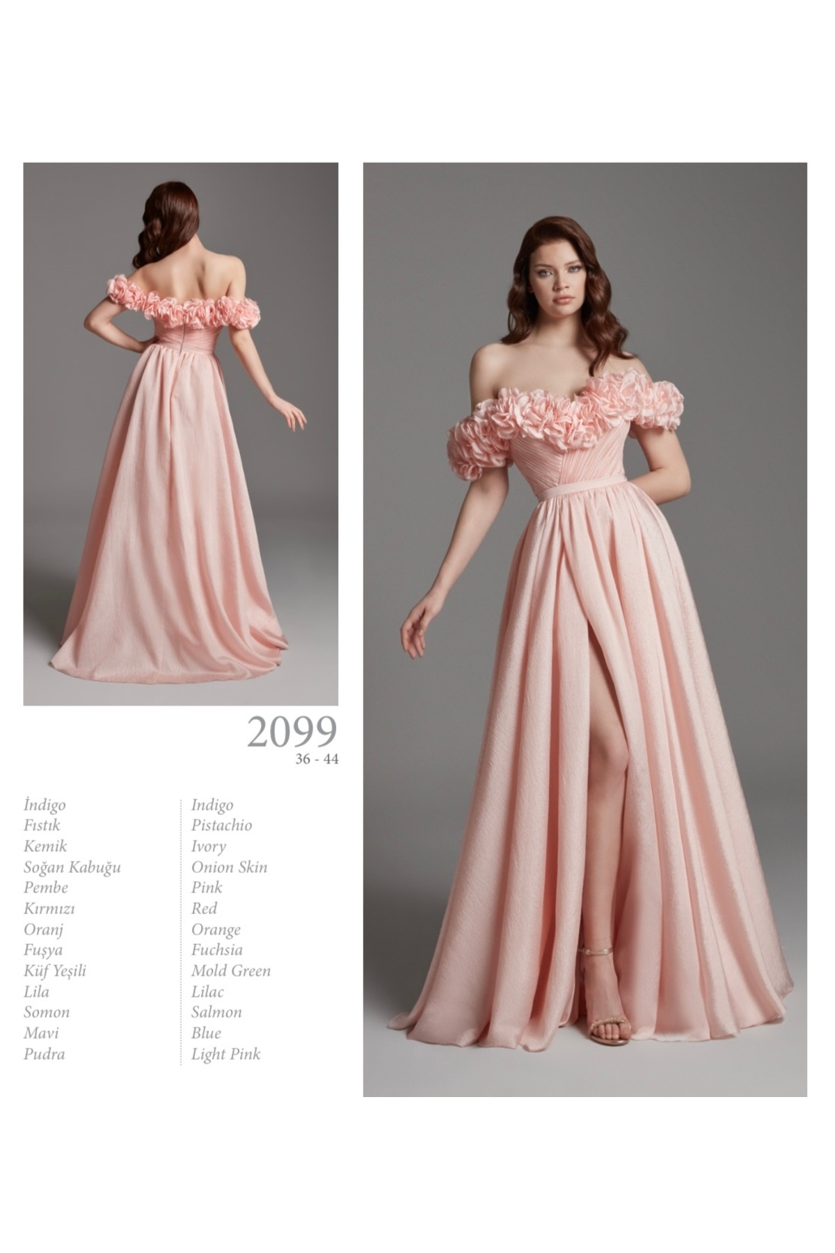 Omuz Dekolteli ve çiçek detaylı Abiye Omuz Dekolteli ve çiçek detaylı Abiye 3075 40