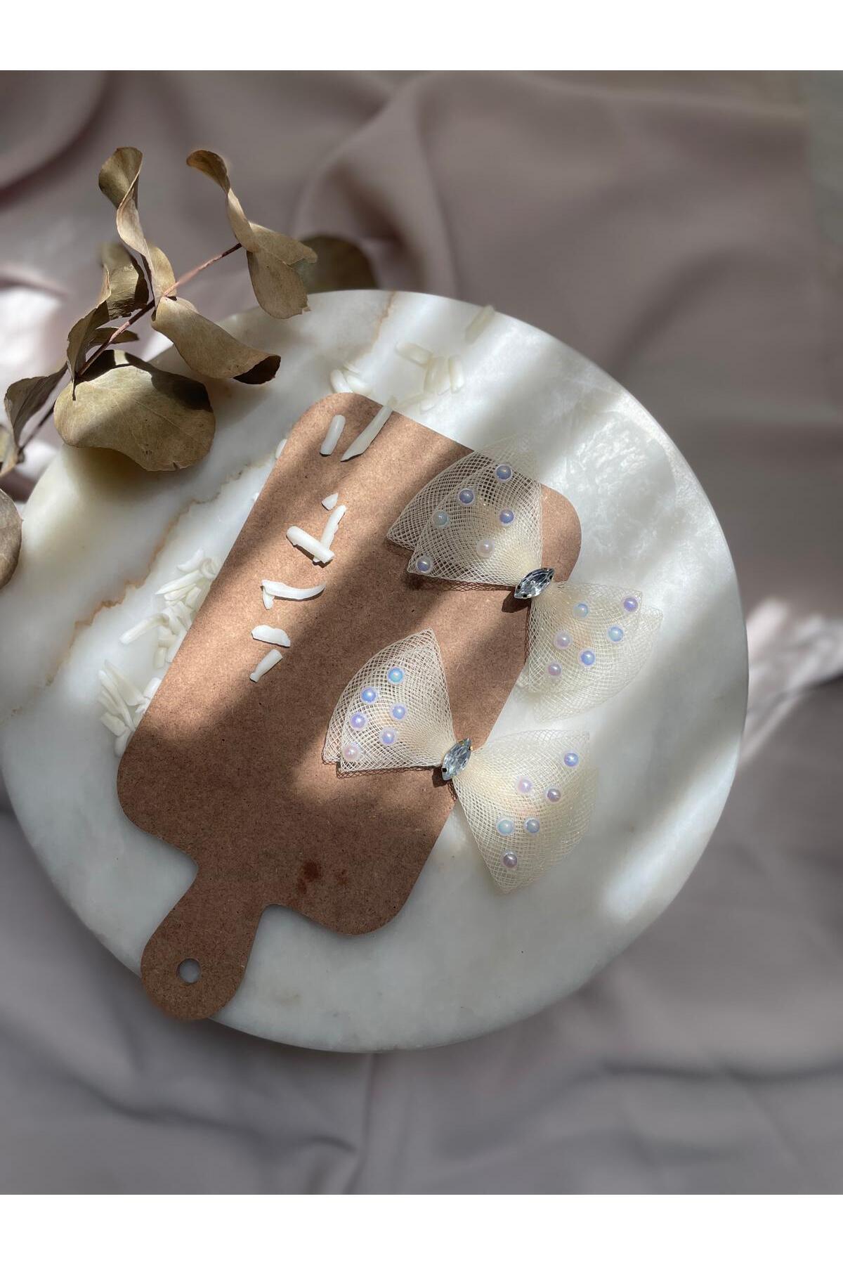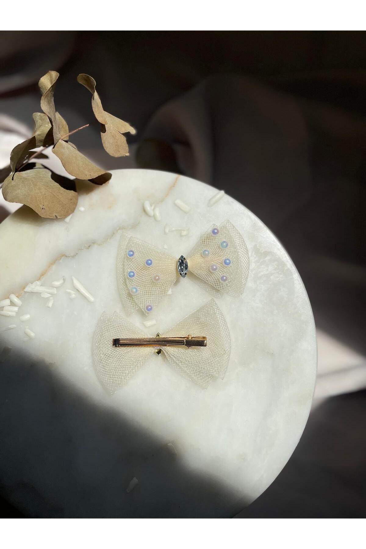 Tül Fiyonklu, İnci Taşlı 2 Adet Toka Tül Fiyonklu, İnci Taşlı 2 Adet Toka İncifiyonk تک سایز
