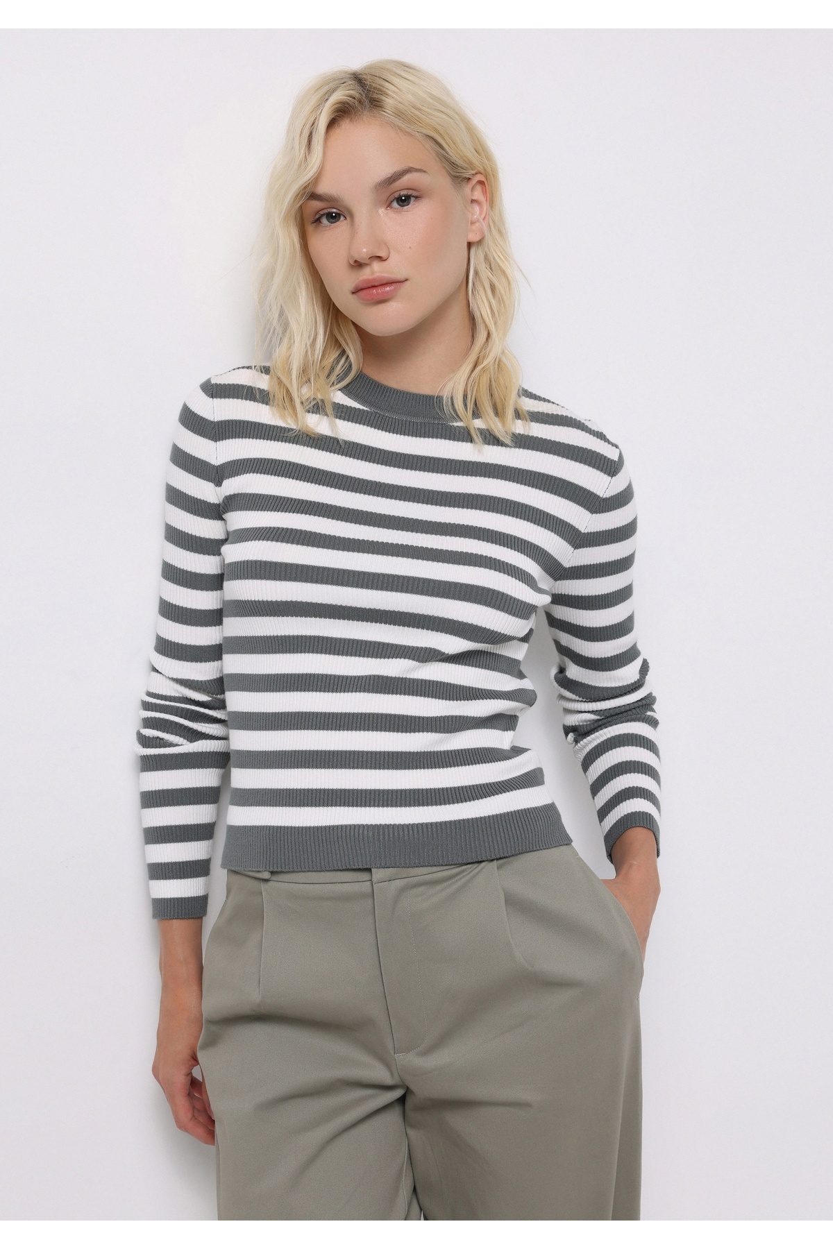 Önü Kısa Arkası Uzun Çizgili Kazak Önü Kısa Arkası Uzun Çizgili Kazak K0072KZK Standart