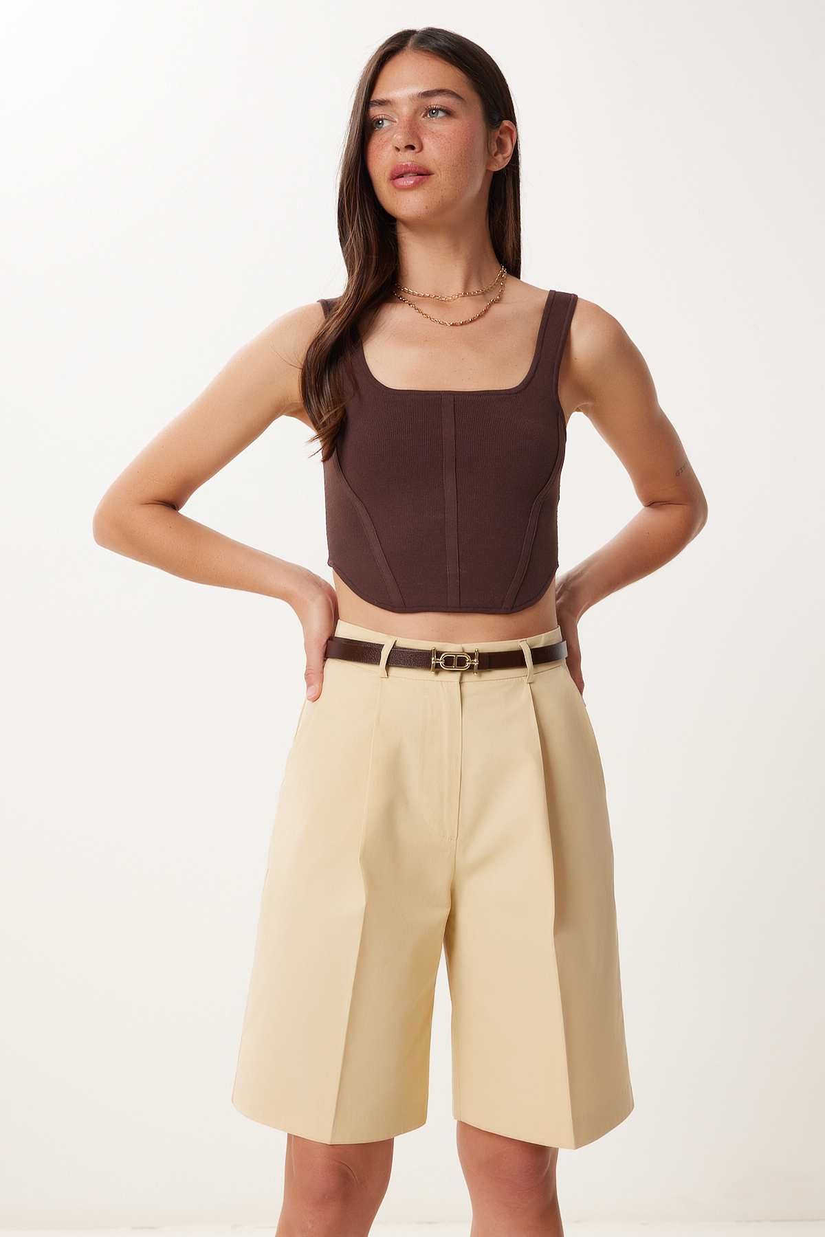 Sarı Pileli Kadın Bermuda Şort Mg2483 Sarı Pileli Kadın Bermuda Şort Mg2483 MG2483 XL