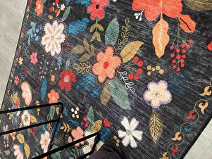 Daisy Siyah Halı Dekoratif Çiçekli Tasarım Otantik İnce Yazlık Yıkanabilir Dokuma Şönil Salon Halısı Daisy Siyah Halı Dekoratif Çiçekli Tasarım Otantik İnce Yazlık Yıkanabilir Dokuma Şönil Salon Halısı TYCLDAISYM 160 x 230