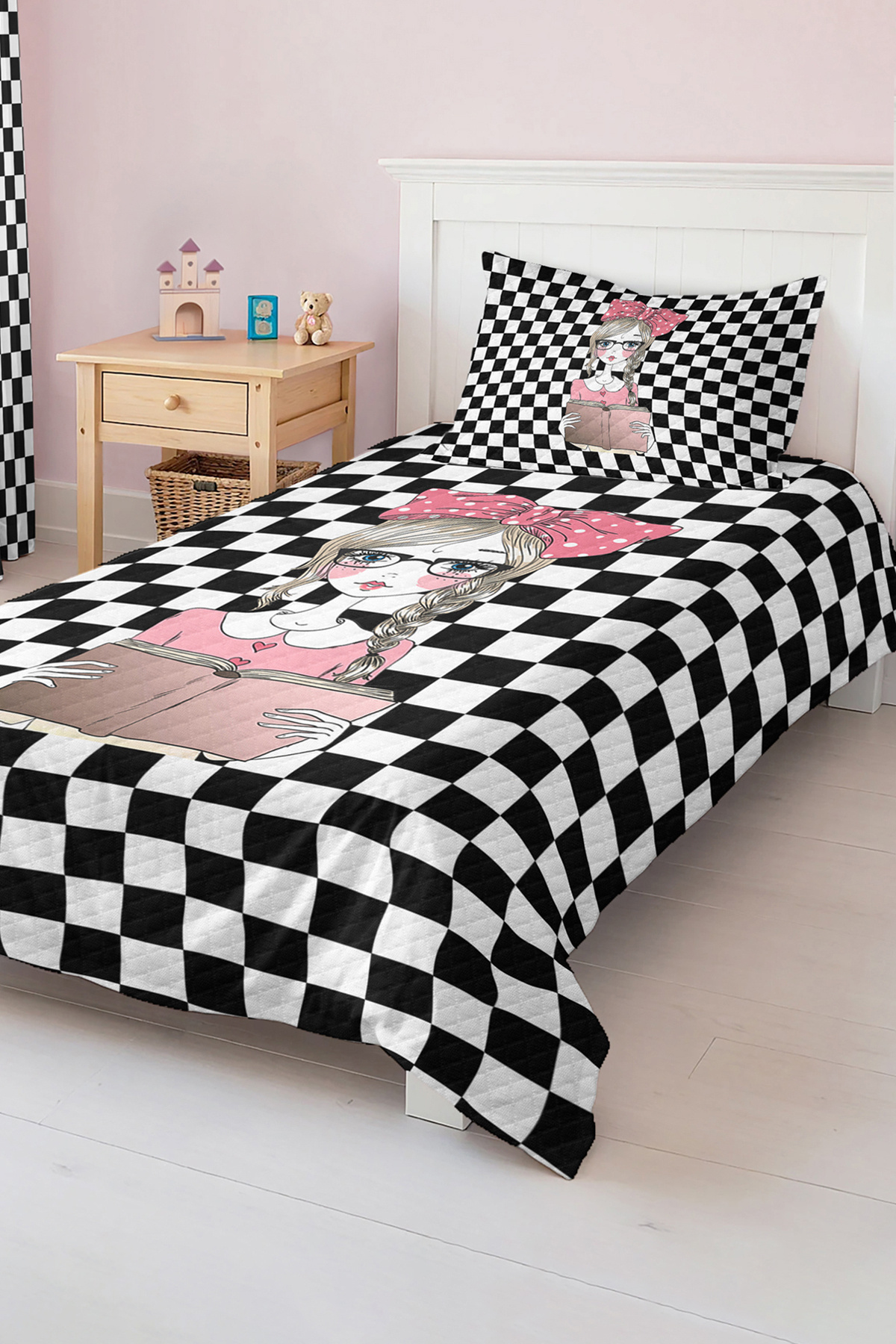 Karşılıklı Kare Desenli Tek Kişilik Çocuk ve Genç Odası Pike Takımı Yatak Örtüsü Karşılıklı Kare Desenli Tek Kişilik Çocuk ve Genç Odası Pike Takımı Yatak Örtüsü Pike-Tek-9300 تک سایز