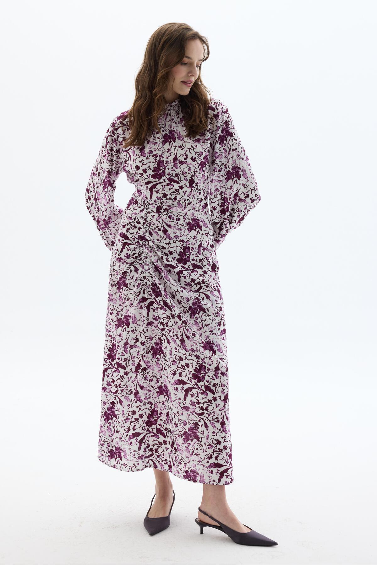 Fisto Çiçekli Elbise Mor Fisto Çiçekli Elbise Mor 9931 L