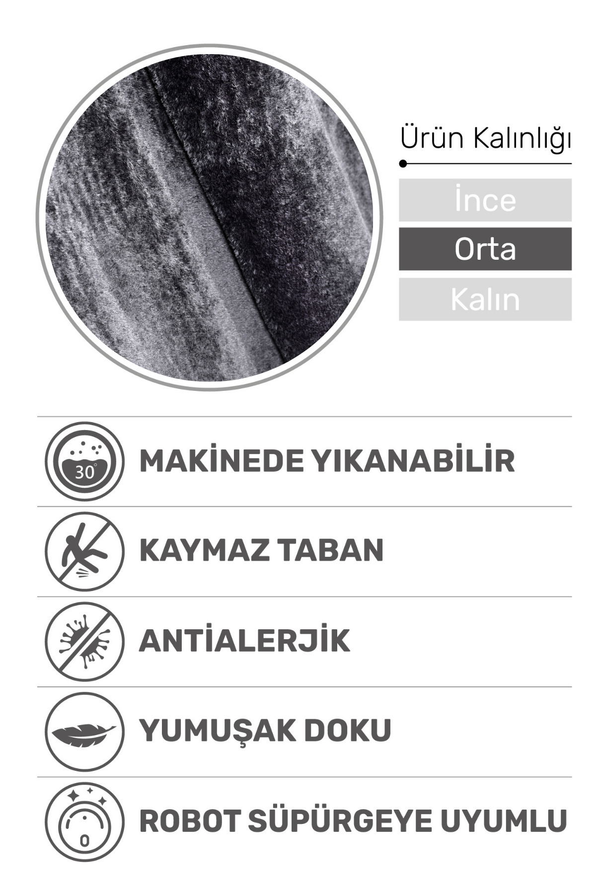 Puffy Yumuşak Antrasit Halı Ve Yolluk | Kaymaz, Yıkanabilir, Salon Mutfak Antre Için Peluş Halı Puffy Yumuşak Antrasit Halı Ve Yolluk | Kaymaz, Yıkanabilir, Salon Mutfak Antre Için Peluş Halı DK82026 160 x 230
