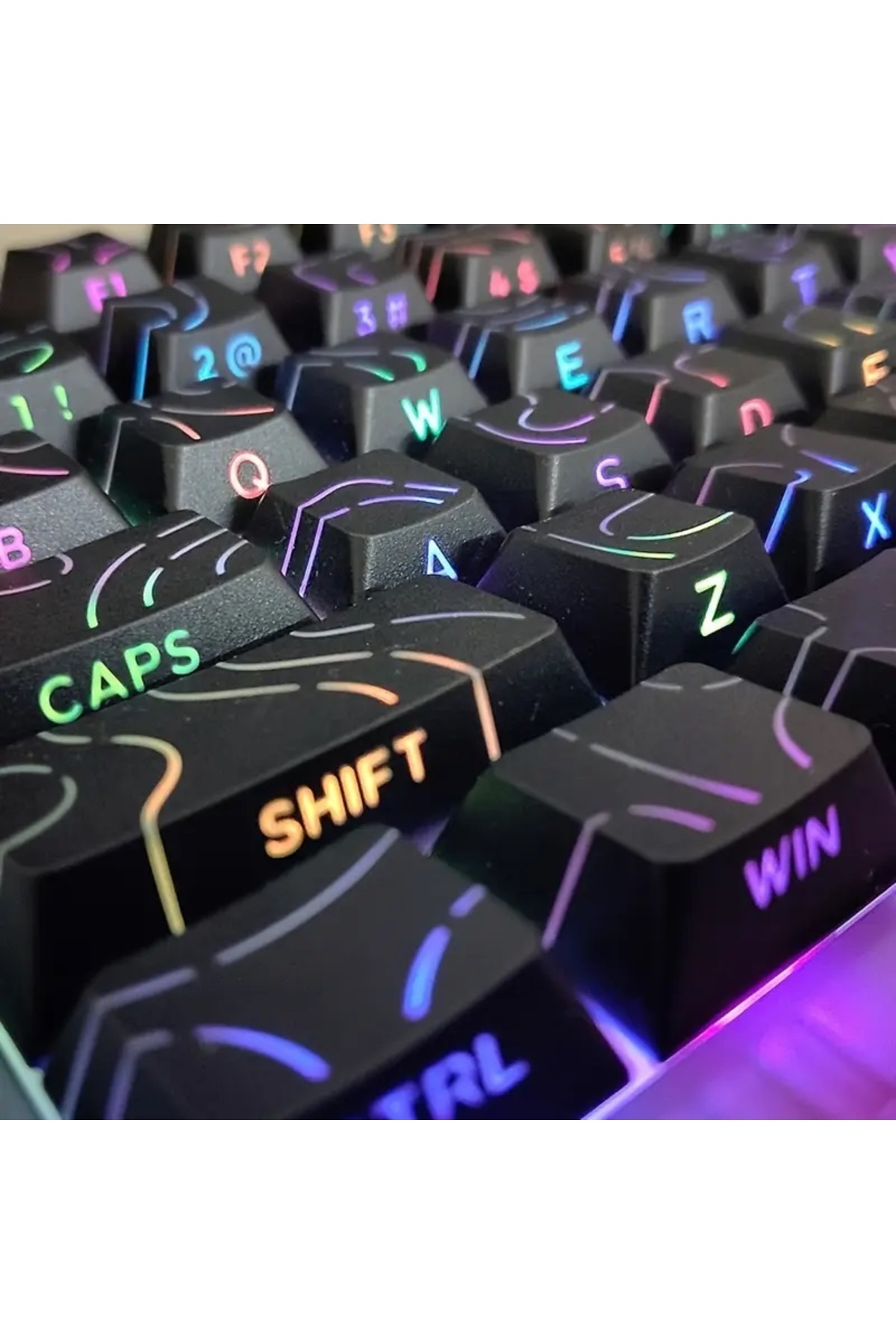Mekanik Klavye Kontur Keycaps Seti- 97 Tuş Şeffaf RGB Uyumlu Çizgili Tuş Takımı Mekanik Klavye Kontur Keycaps Seti- 97 Tuş Şeffaf RGB Uyumlu Çizgili Tuş Takımı klavyetus تک سایز