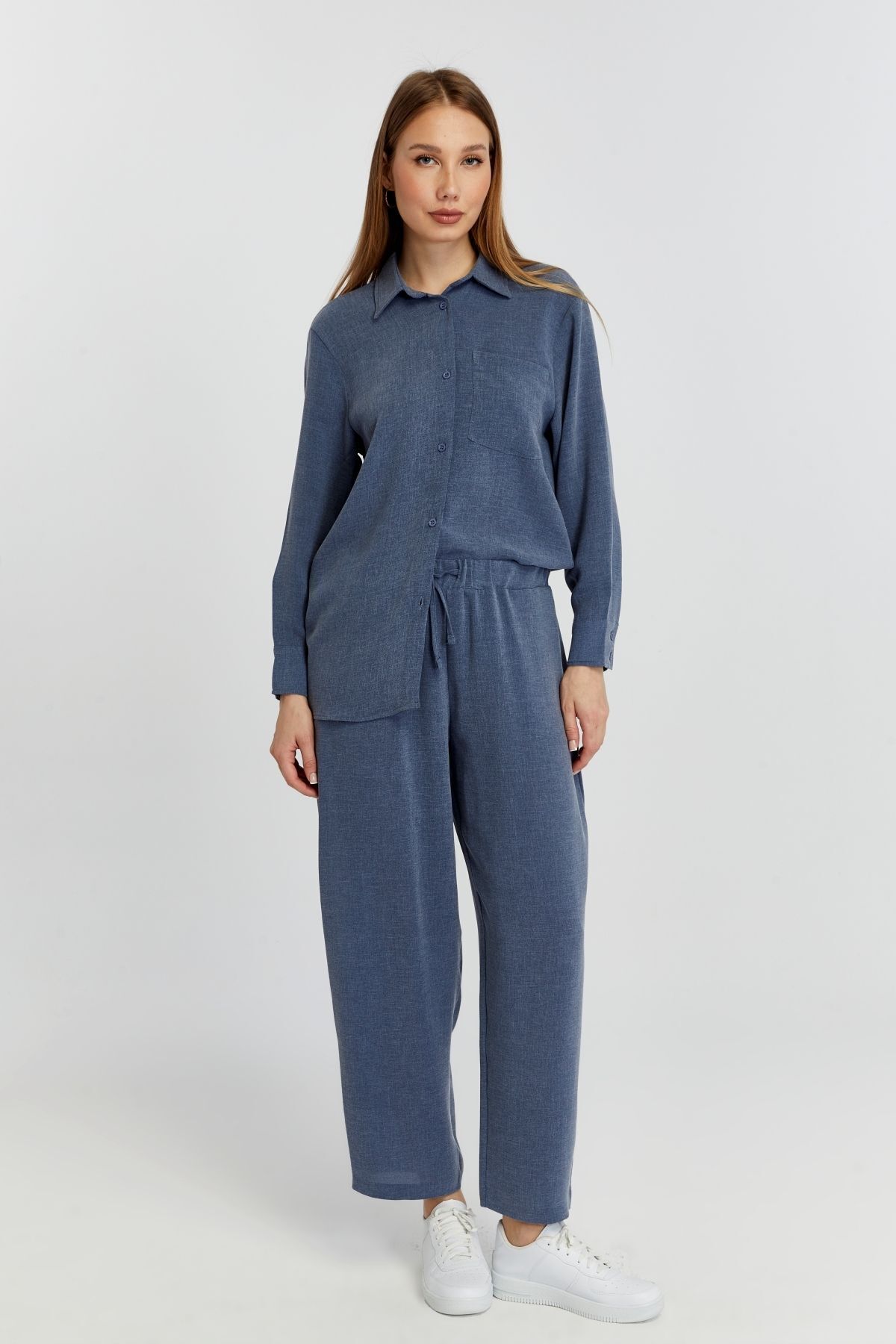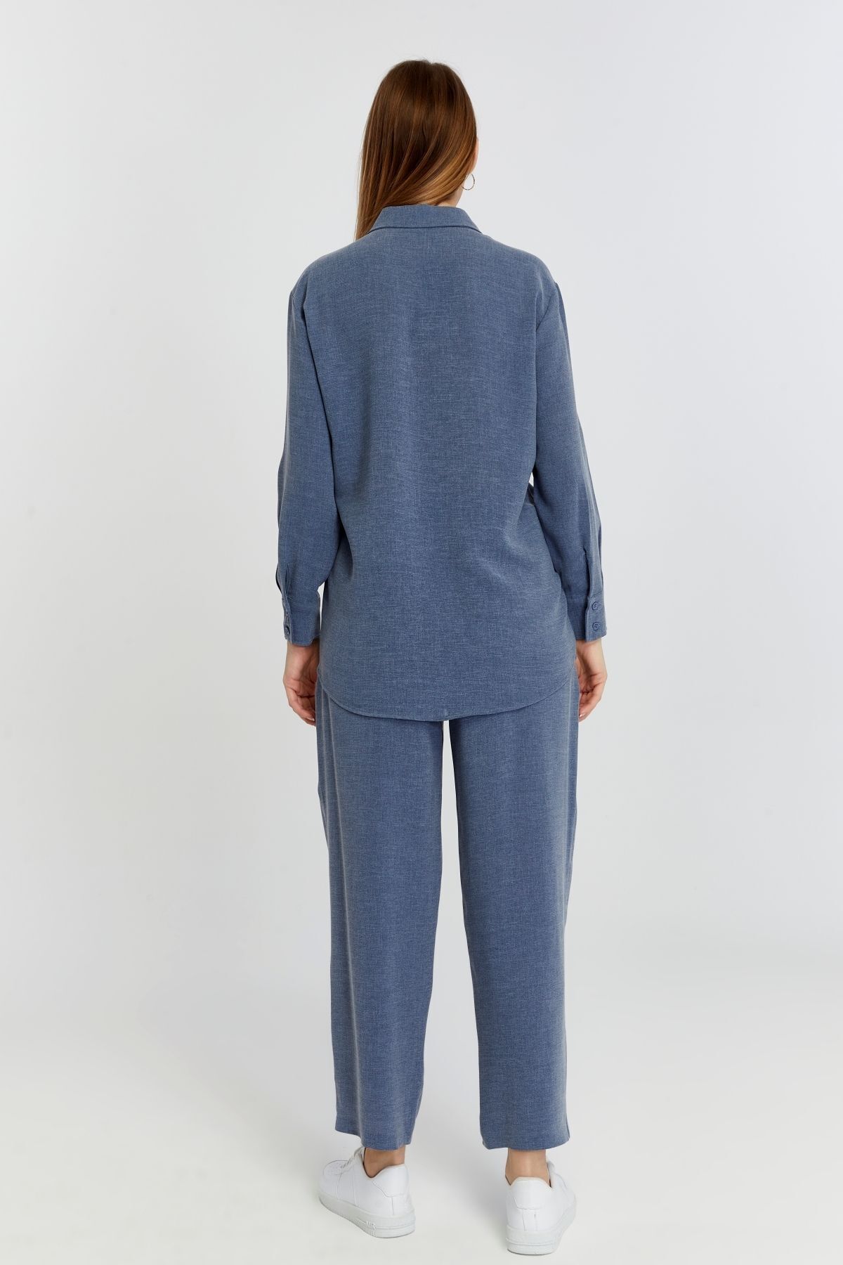 Kadın İndigo Bol Paça Dokuma Pantolon Kadın İndigo Bol Paça Dokuma Pantolon 46309P XL