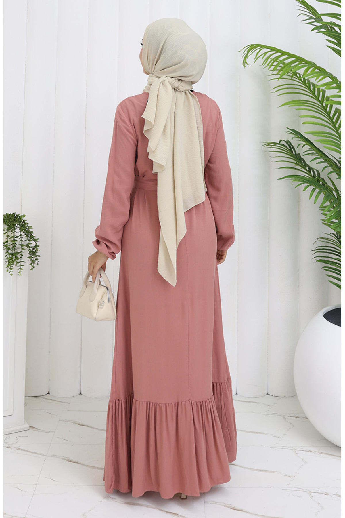 Eteği Fırfırlı Kuşaklı Elbise 4103-07 Soğan Kabuğu Eteği Fırfırlı Kuşaklı Elbise 4103-07 Soğan Kabuğu SFMATLY4103-07 50-52