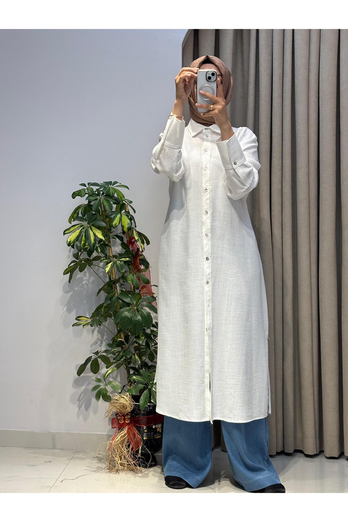 Yanları Yırtmaçlı Pamuk Keten Beyaz Tunik Yanları Yırtmaçlı Pamuk Keten Beyaz Tunik 3247 3