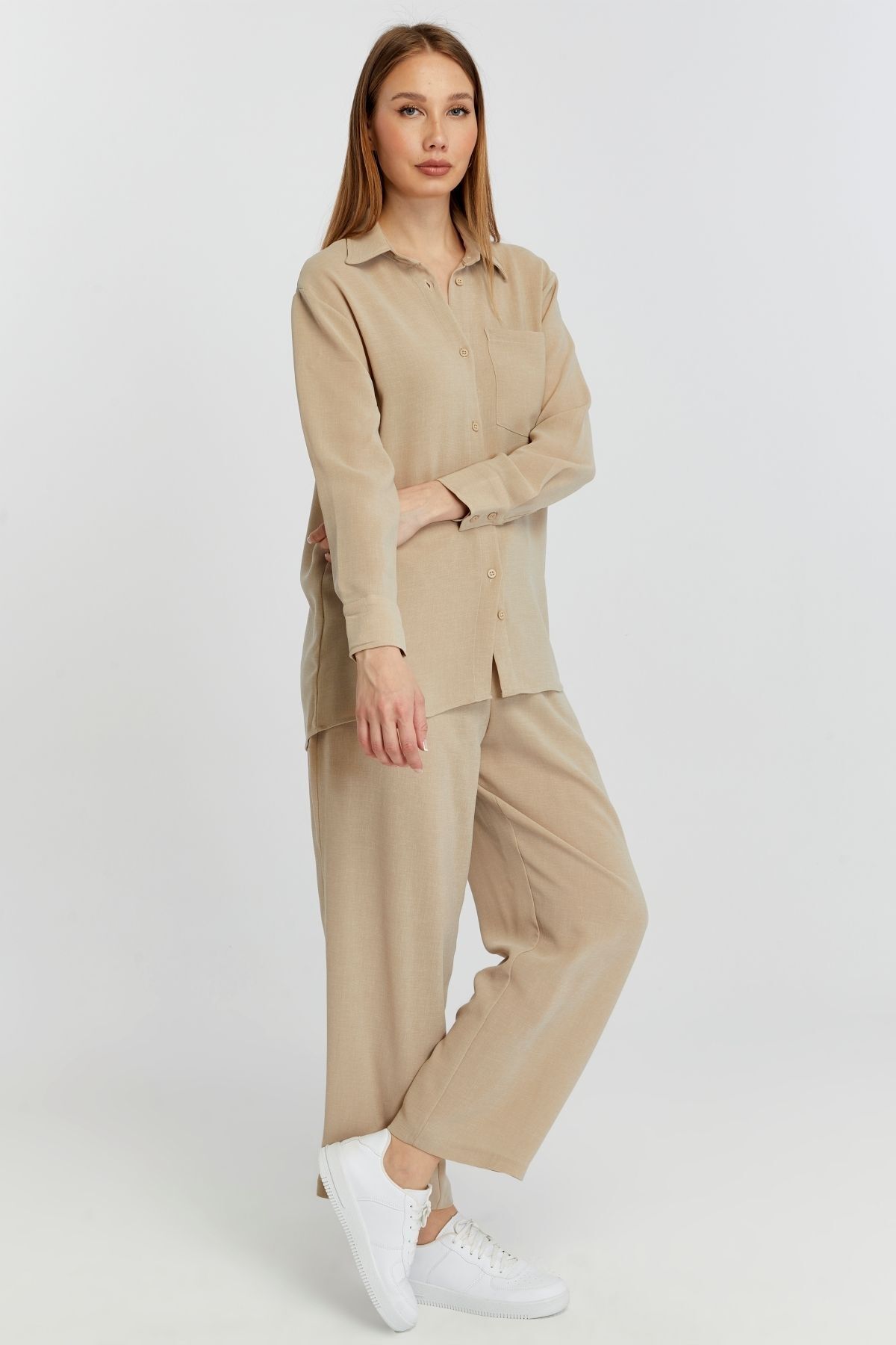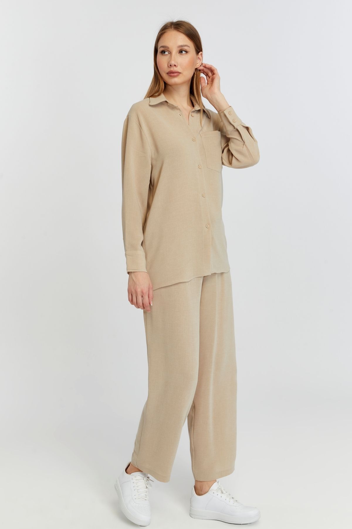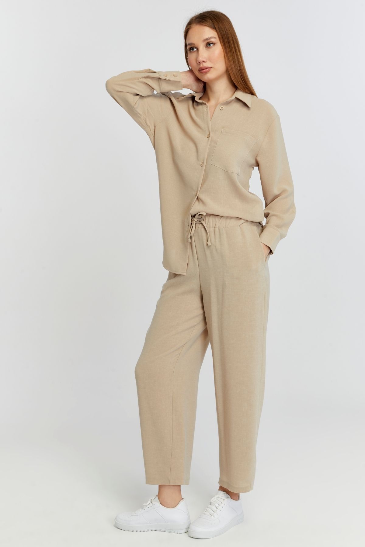 Kadın Bej Bol Paça Dokuma Pantolon Kadın Bej Bol Paça Dokuma Pantolon 46309P XL