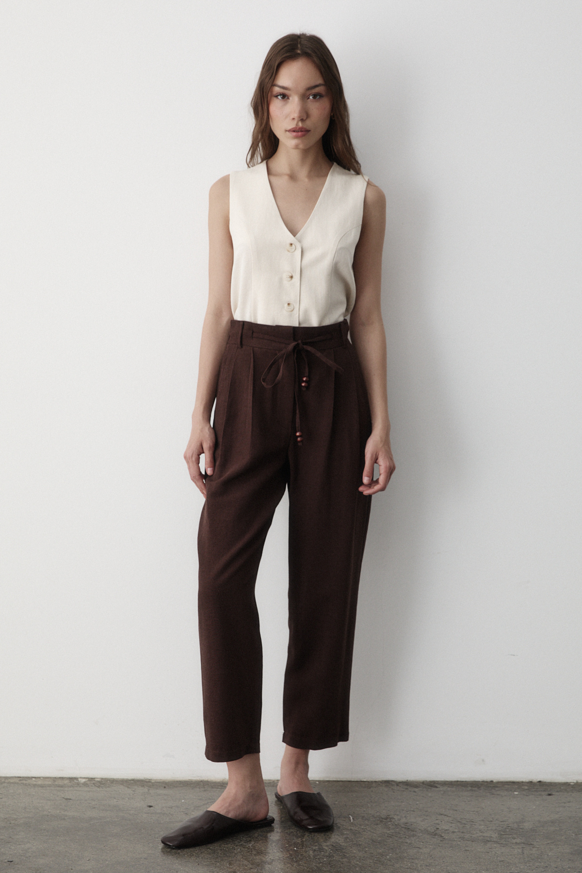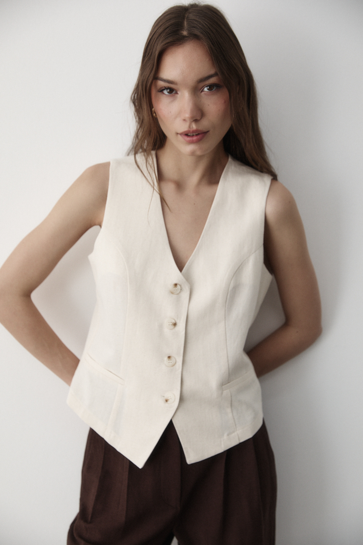 Kadın Naturel Astarlı Düğme Detaylı Keten Yelek Kadın Naturel Astarlı Düğme Detaylı Keten Yelek 7541 XL