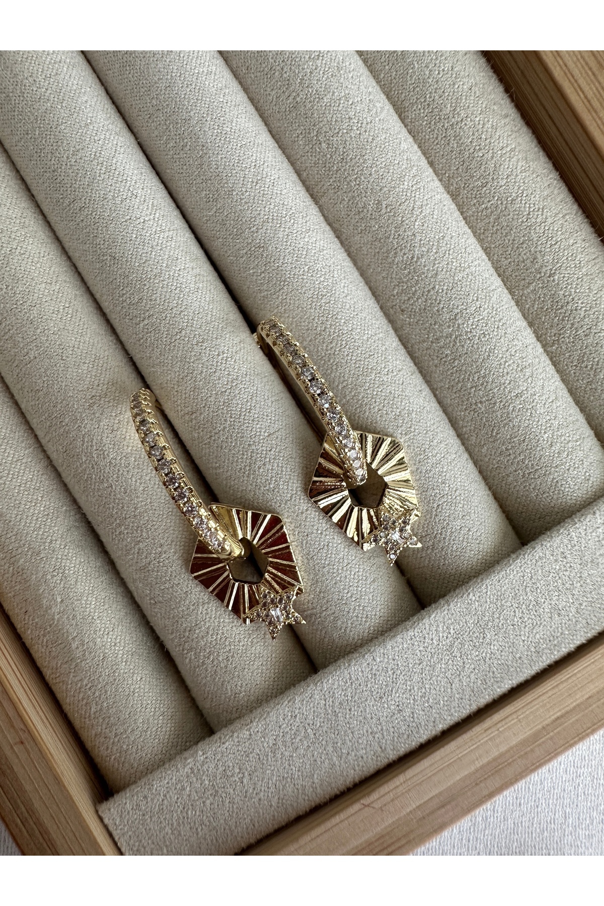 Gold Yıldız Detay Taşlı Halka Küpe Gold Yıldız Detay Taşlı Halka Küpe RBK323 تک سایز