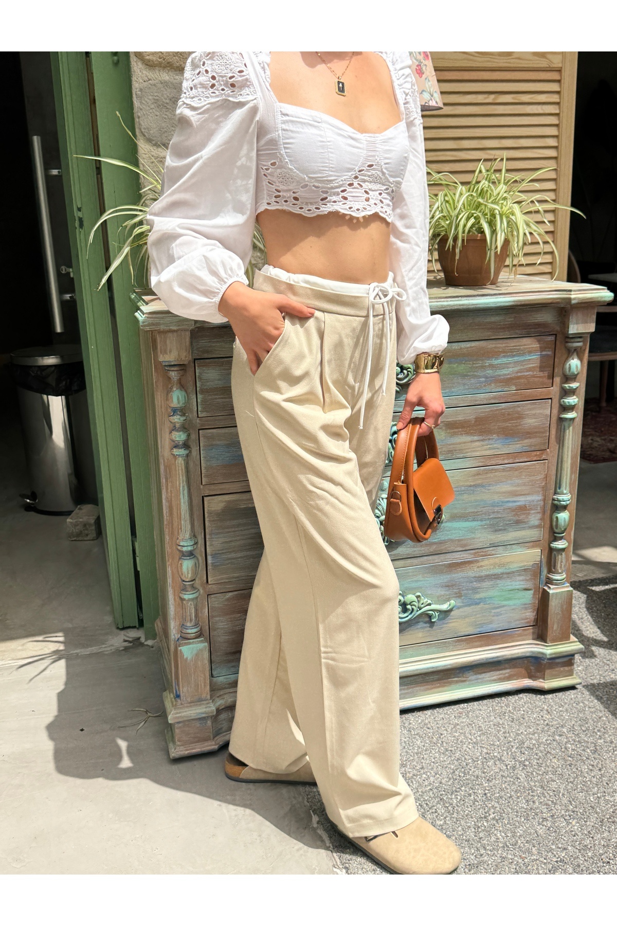 Krem Önden Bağlamalı Pantolon/ Rahat Kesim/ Plazzo Pantolon/yüksek Bel Pantolon/ Geniş Paça Pantolon Krem Önden Bağlamalı Pantolon/ Rahat Kesim/ Plazzo Pantolon/yüksek Bel Pantolon/ Geniş Paça Pantolon p02 L