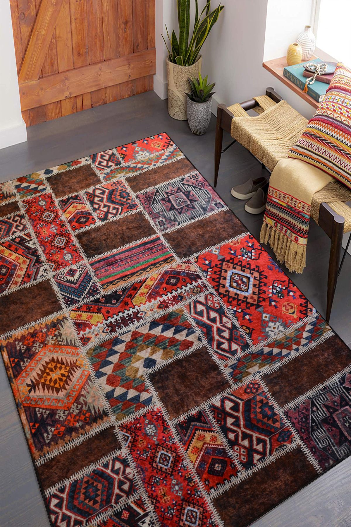 Otantik Patchwork Desenli Kaymaz Tabanlı, Makinede Yıkanabilir,Dekoratif Halı Otantik Patchwork Desenli Kaymaz Tabanlı, Makinede Yıkanabilir,Dekoratif Halı patchwork_elıt 160 x 230