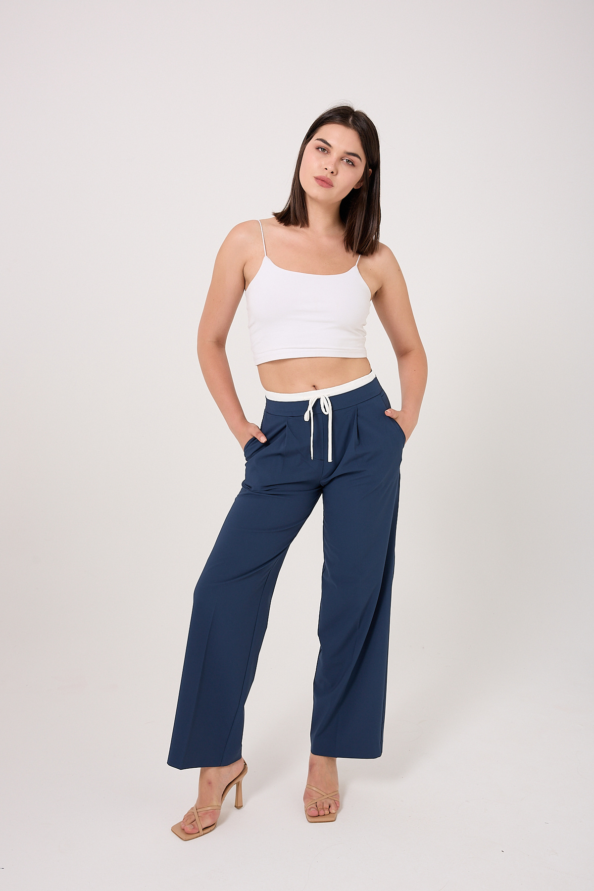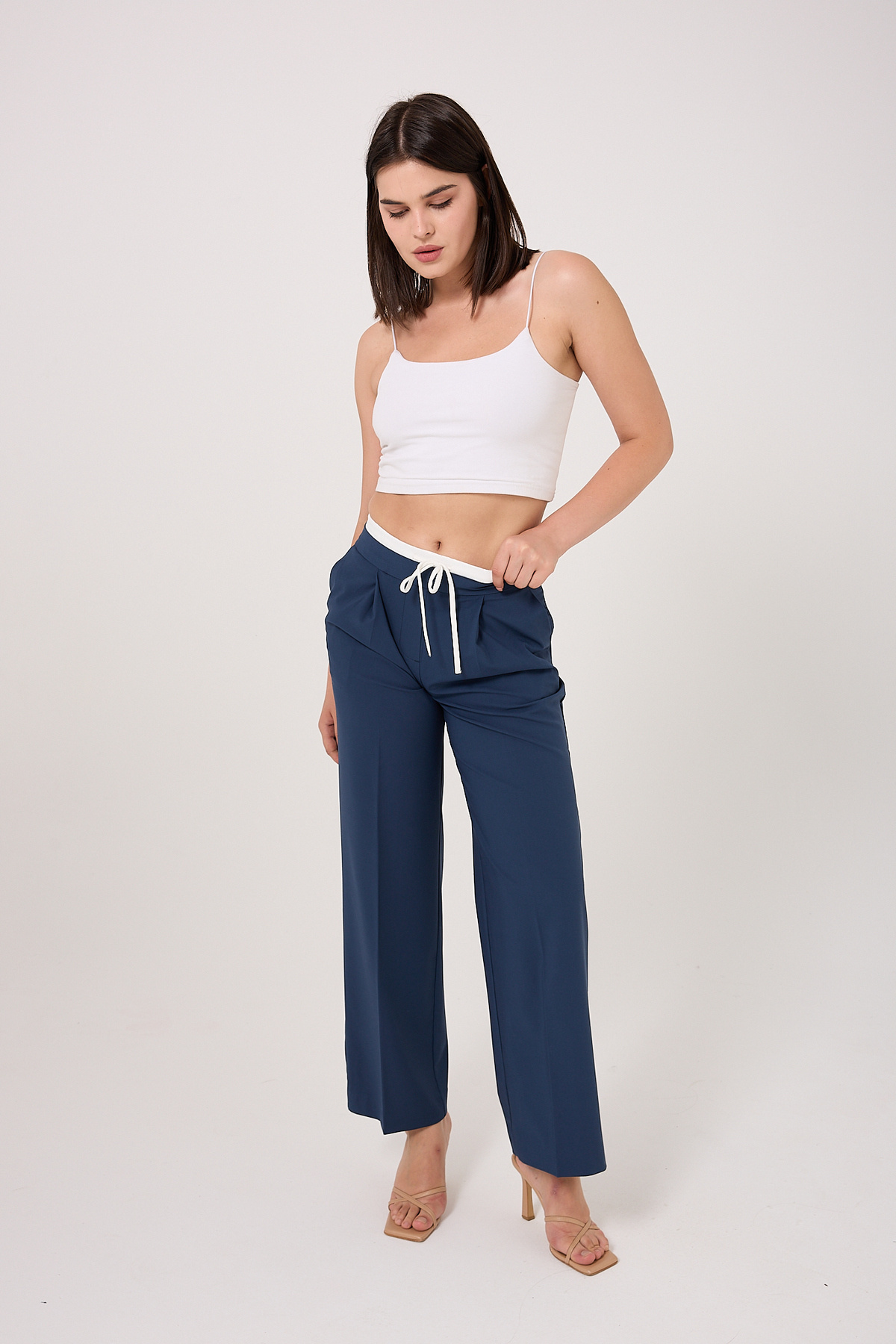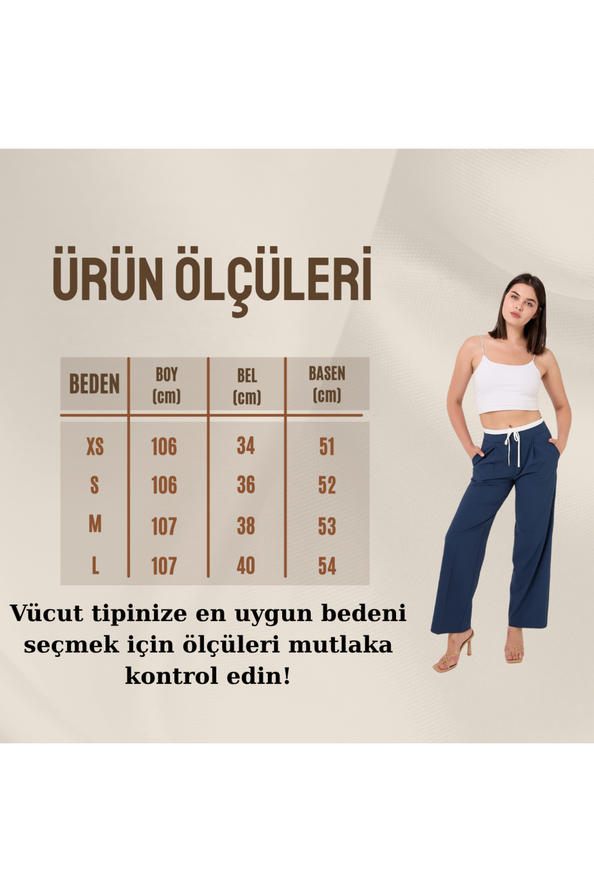ÇİFT BEL BANTLI YÜKSEK BEL WİDE LEG KADIN PANTOLON ÇİFT BEL BANTLI YÜKSEK BEL WİDE LEG KADIN PANTOLON CESS-2025002 L