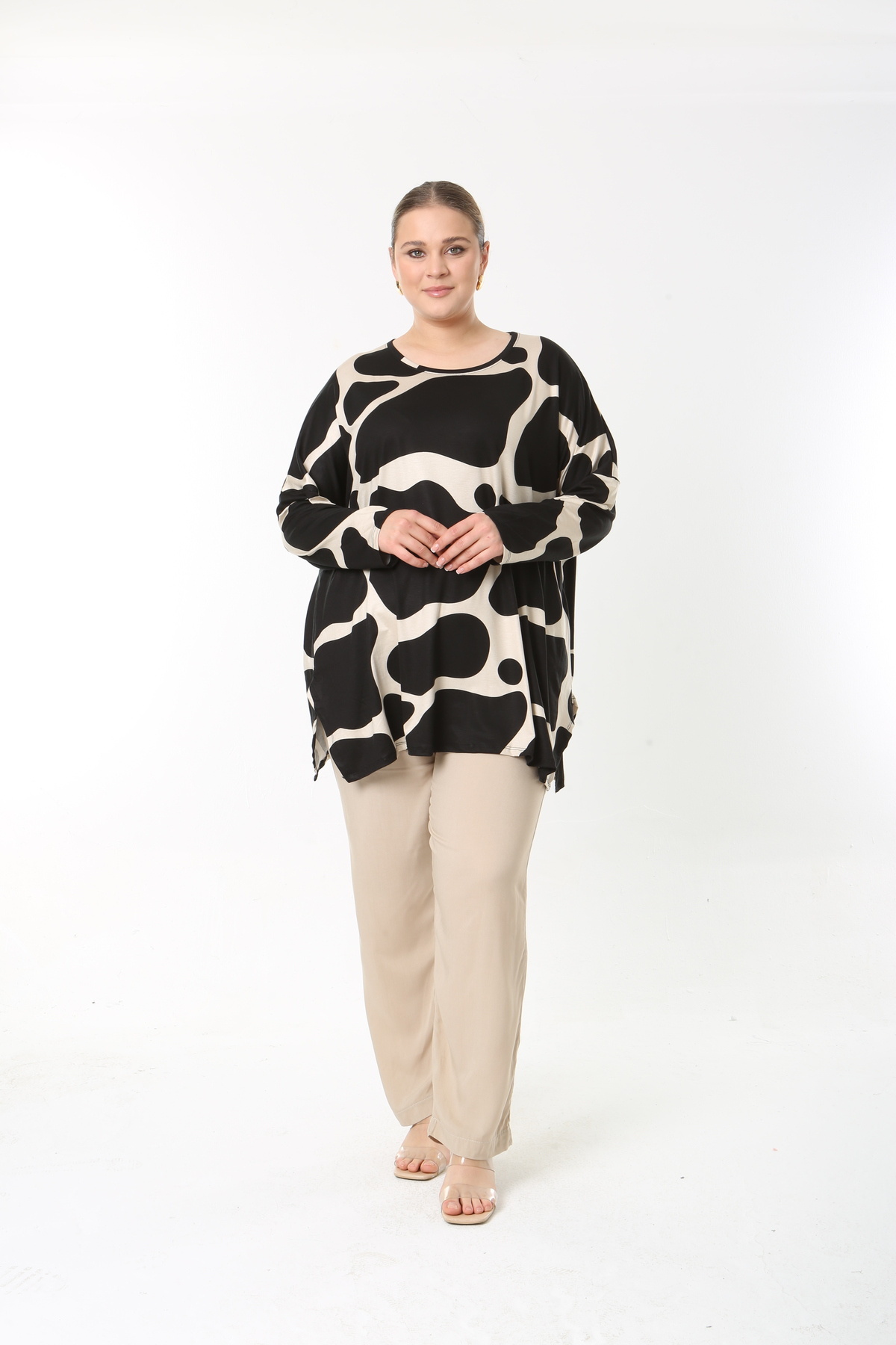 kadın yazlık uzun kol büyük beden tunik kadın yazlık uzun kol büyük beden tunik H9036 60-62