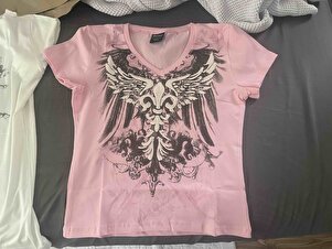 Pembe Gothic Wing Y2K Kısa Kollu Crop Pembe Gothic Wing Y2K Kısa Kollu Crop KHFT741 L
