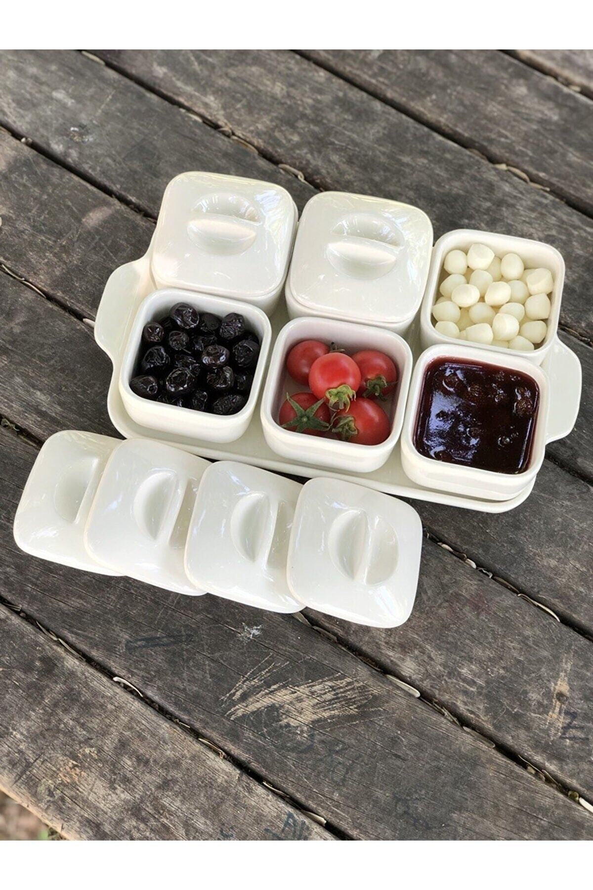 Tepsili 6 Bölmeli Lüx Kahvaltılık Seti Tepsili 6 Bölmeli Lüx Kahvaltılık Seti HİM001061 تک سایز
