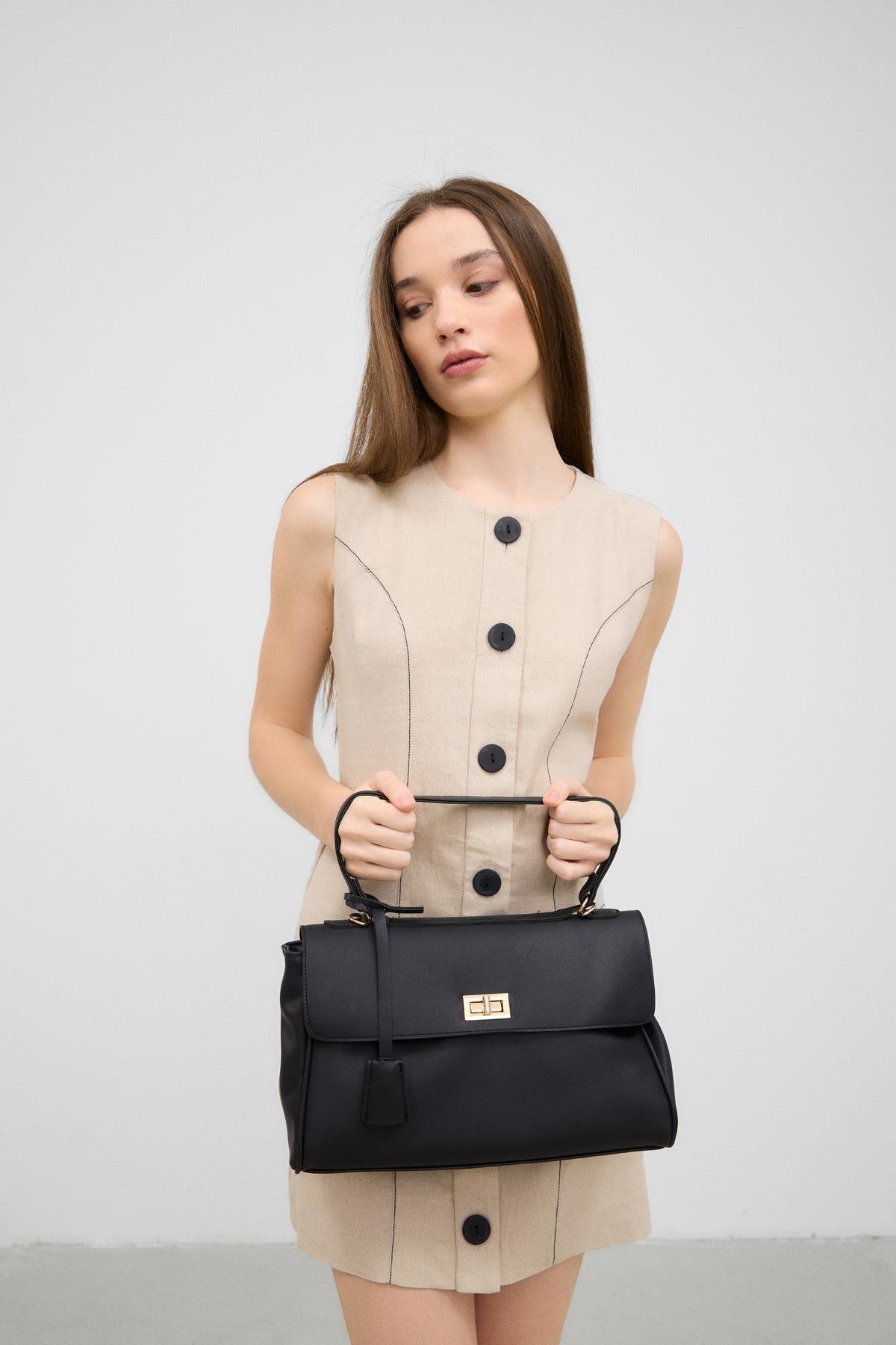 Amara Kilitli Klasik Omuz Çantası Siyah Amara Kilitli Klasik Omuz Çantası Siyah SH823 Standart