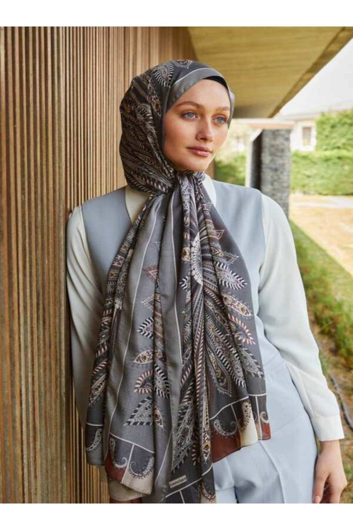 Açık Gri Dairesel Hint İpeği Şal Açık Gri Dairesel Hint İpeği Şal LVD.HNT.0004 180 x 70