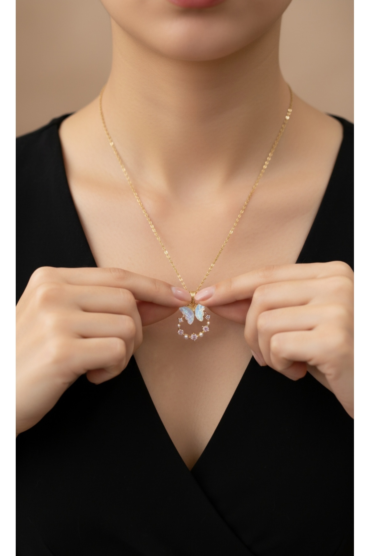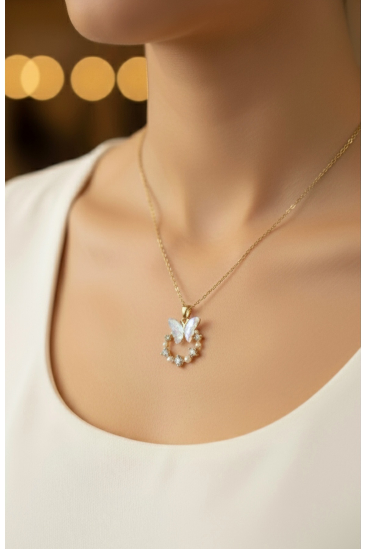 Çelik Kolye, Kelebek Kolye, Halka Kelebek Kolye Hediyelik Ürün Kadın Aksesuarı Çelik Kolye, Kelebek Kolye, Halka Kelebek Kolye Hediyelik Ürün Kadın Aksesuarı UHJ6