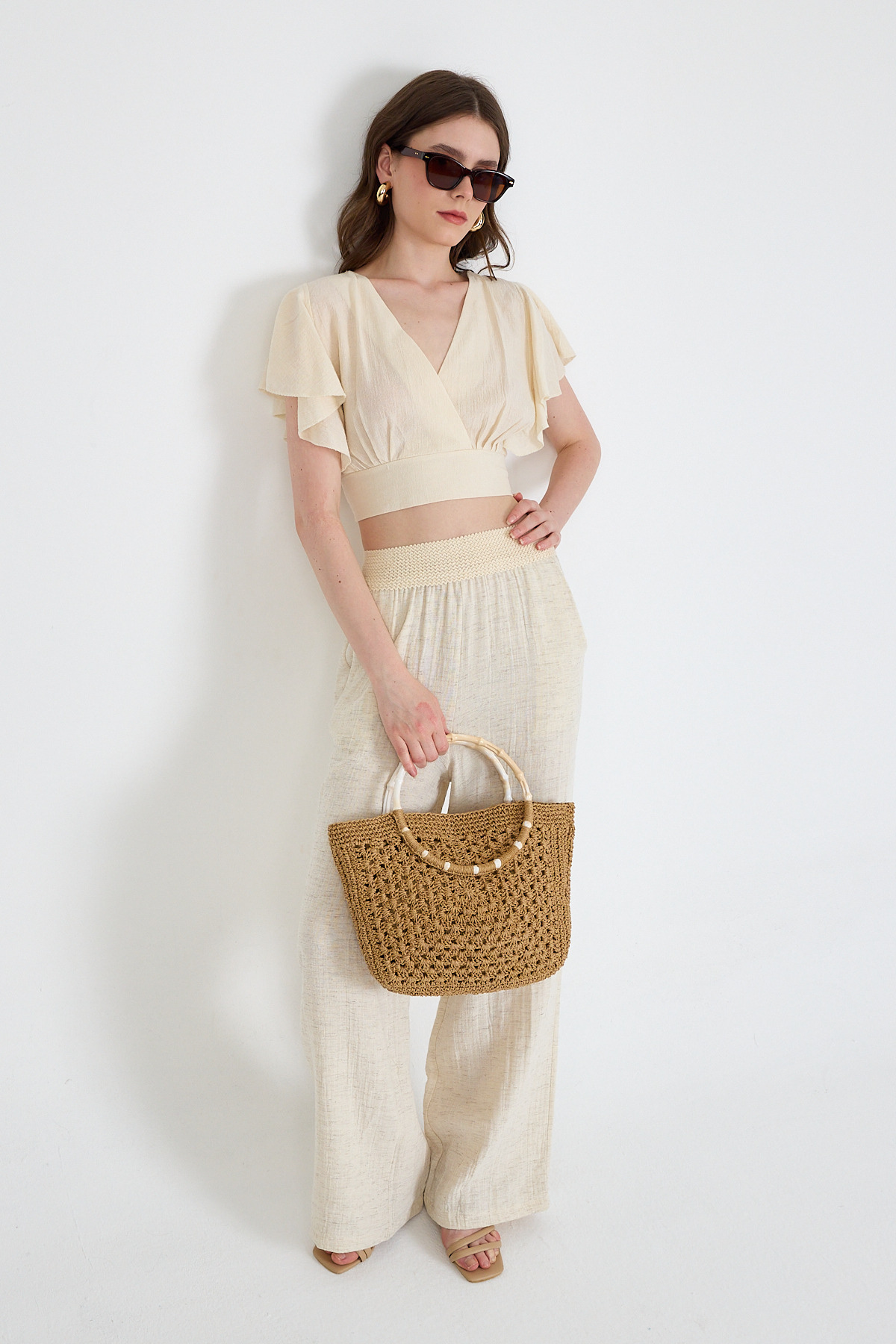 Natural Keten Görünümlü %100 Pamuk Fırfır Kol Detaylı Crop Bluz 6942 Natural Keten Görünümlü %100 Pamuk Fırfır Kol Detaylı Crop Bluz 6942 25Y1123UST189 XL