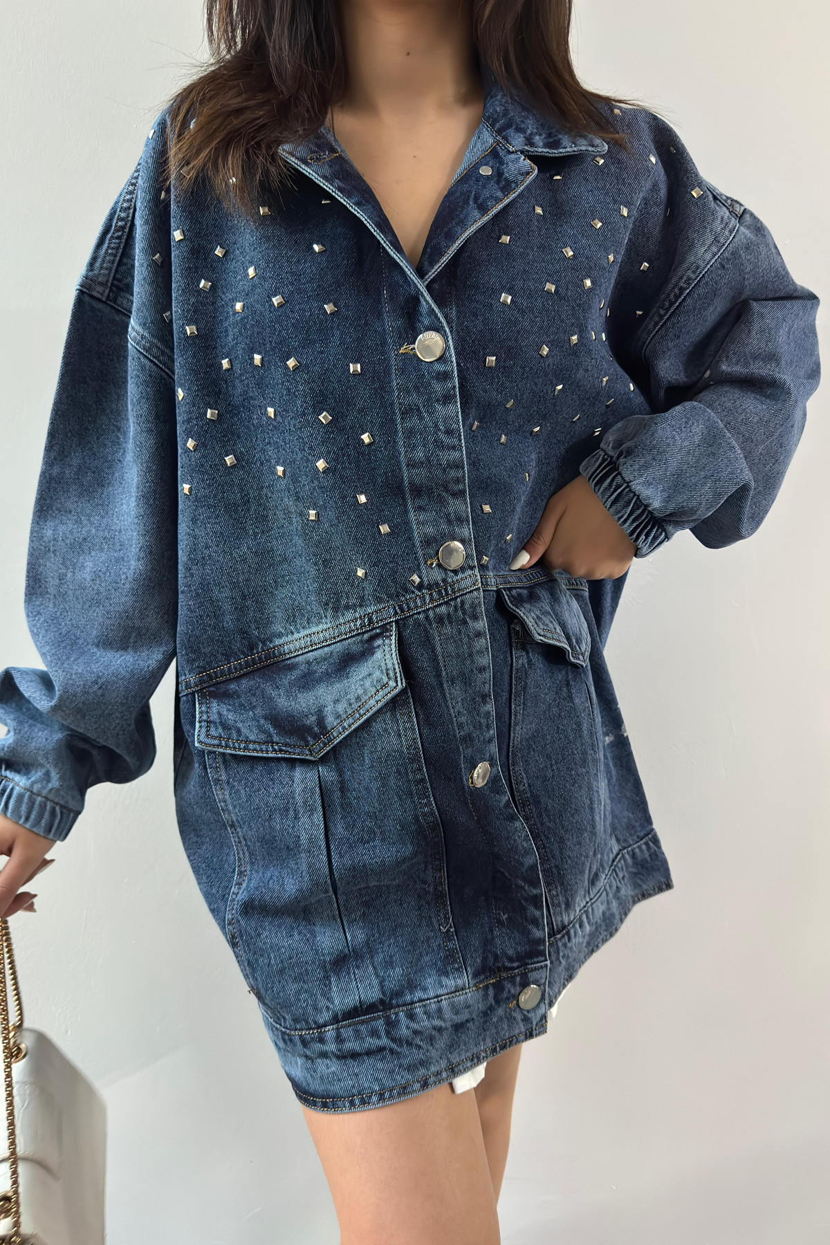 Kadın Boyfriend Düğmeli Salaş Oversize Taş İşlemeli Cepli Uzun Kot Ceket Kadın Boyfriend Düğmeli Salaş Oversize Taş İşlemeli Cepli Uzun Kot Ceket citi-0001 XL