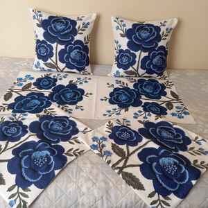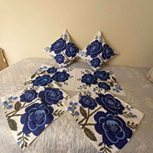 3D Nakış Görünümlü Lacivert Çiçek Desenli Dijital Baskılı 4lü Dekoratif Kırlent Kılıfı Seti 3D Nakış Görünümlü Lacivert Çiçek Desenli Dijital Baskılı 4lü Dekoratif Kırlent Kılıfı Seti PNCHSR 43 x 43