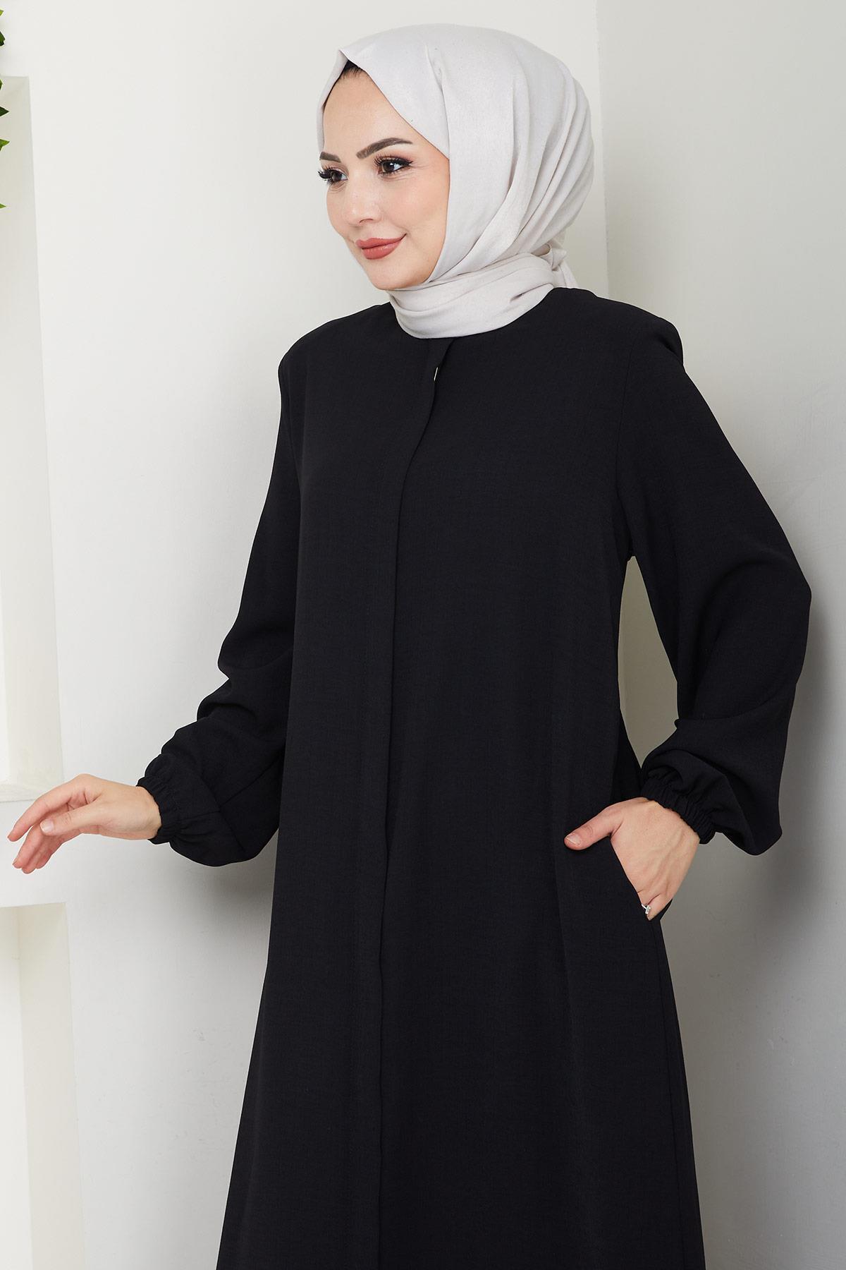 Önü Patlı Büyük Beden Ferace Siyah HM2762 Önü Patlı Büyük Beden Ferace Siyah HM2762 TYCEAD1823CCA7239743FDB00 56