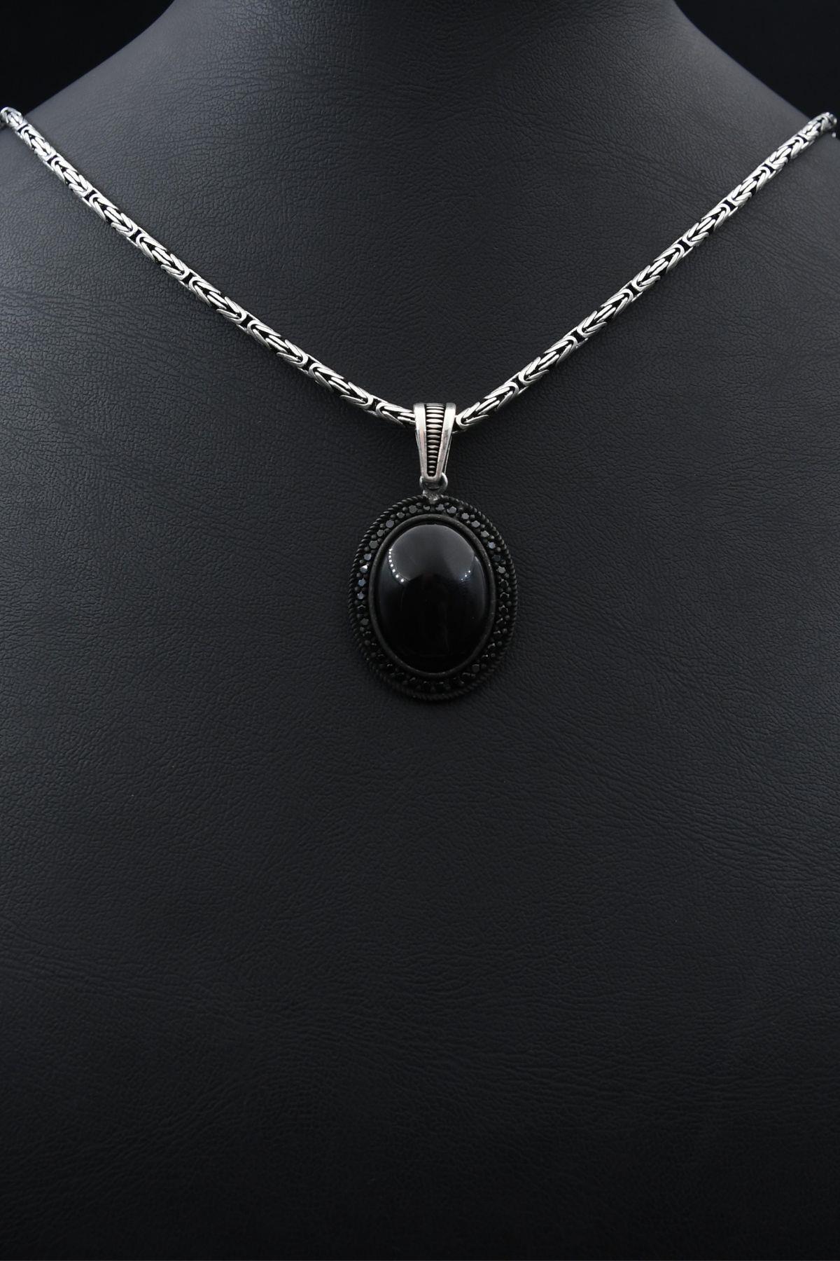 Oniks Taşlı Zirkon Taş Süslemeli 925 Ayar Gümüş Kolye Kral Zincir 2Mm 901913 Oniks Taşlı Zirkon Taş Süslemeli 925 Ayar Gümüş Kolye Kral Zincir 2Mm 901913 70 cm