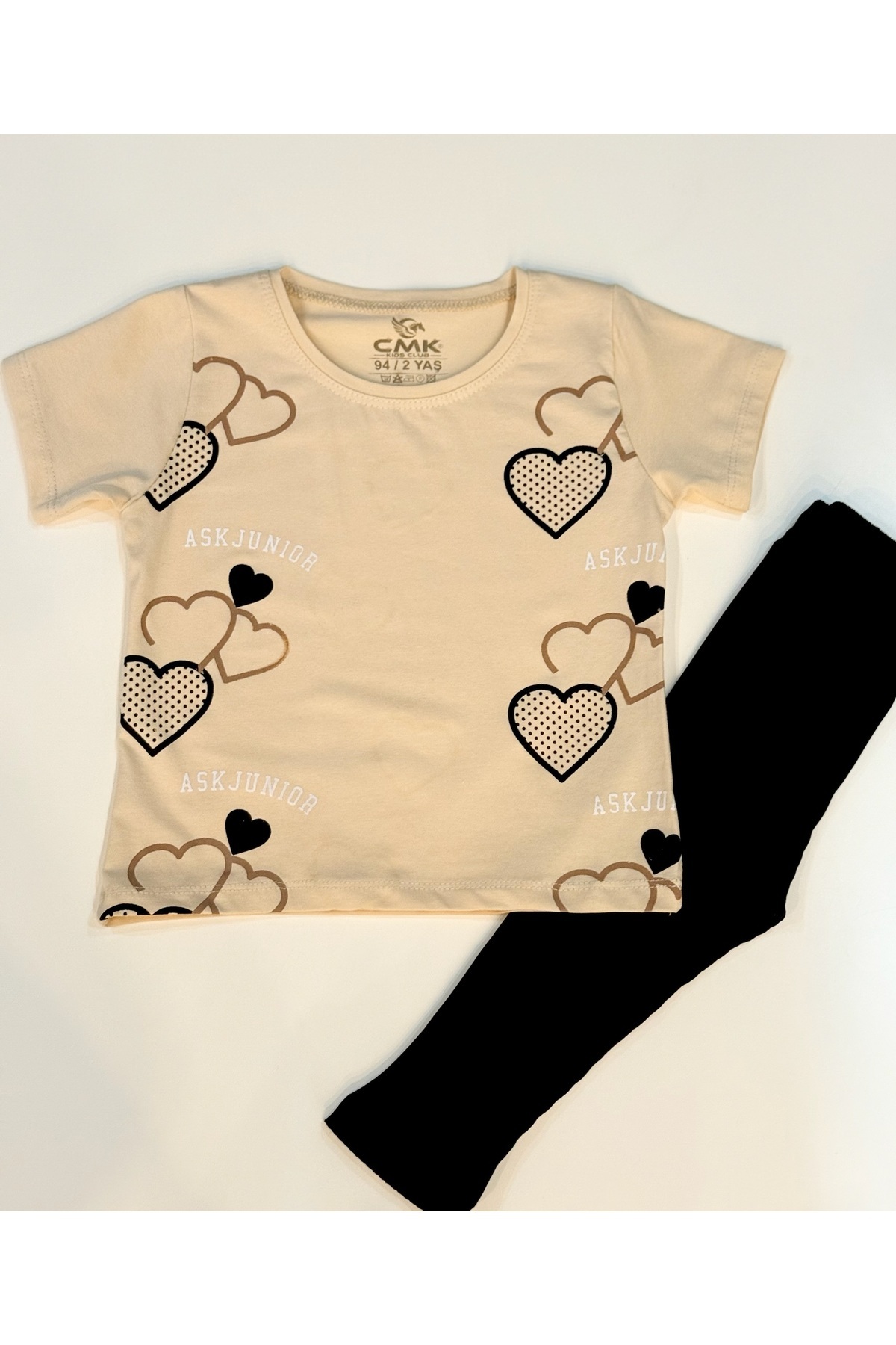 Kız Çocuk Kalpli Bej Tişört ve Siyah Tayt Alt-Üst Takım Kız Çocuk Kalpli Bej Tişört ve Siyah Tayt Alt-Üst Takım NVN-KG-BB0002-Y02Y05 5-6 Yaş