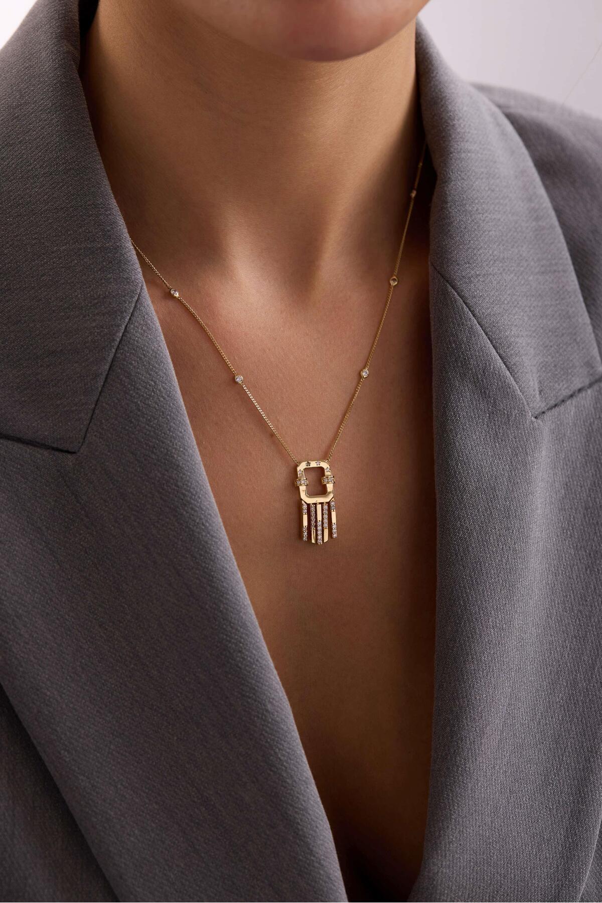 14 Ayar Zincirli Siyah Taş Uçlu Altın Kolye 14 Ayar Zincirli Siyah Taş Uçlu Altın Kolye BST0530 تک سایز