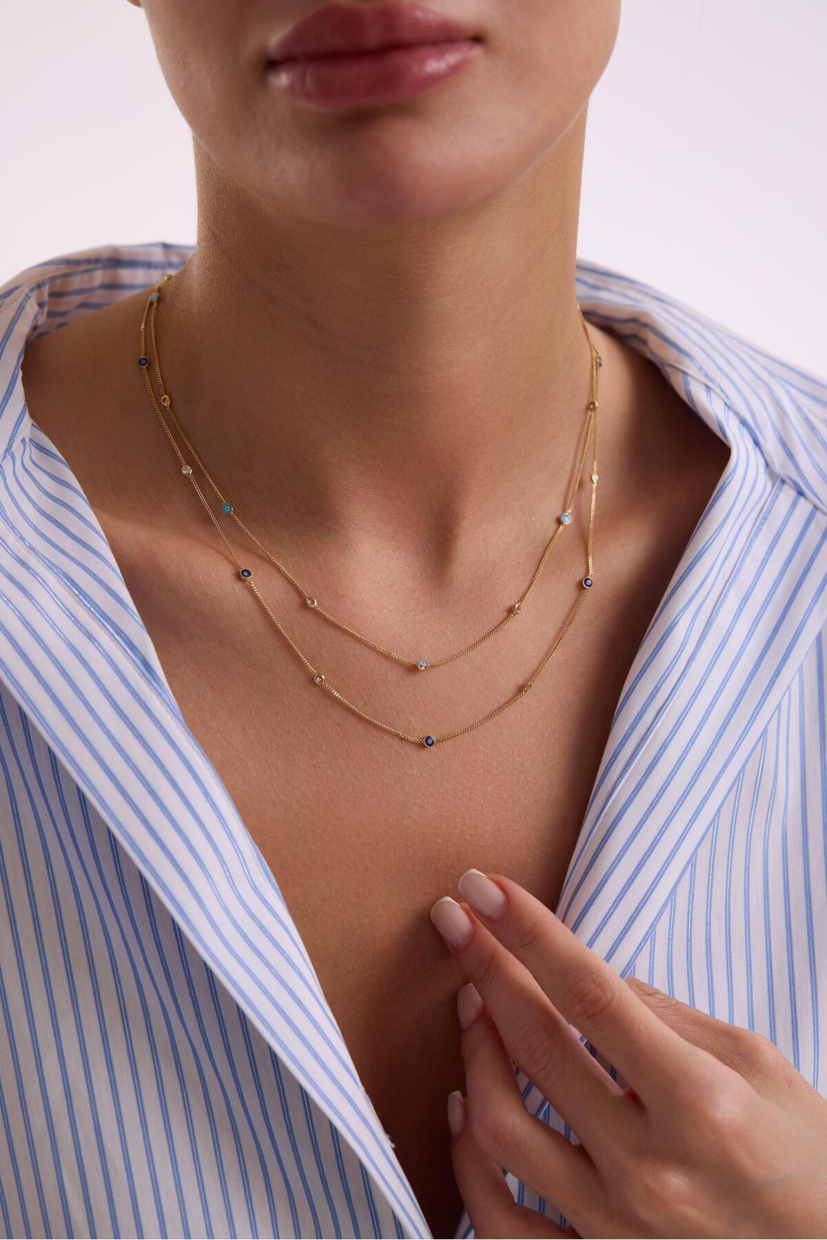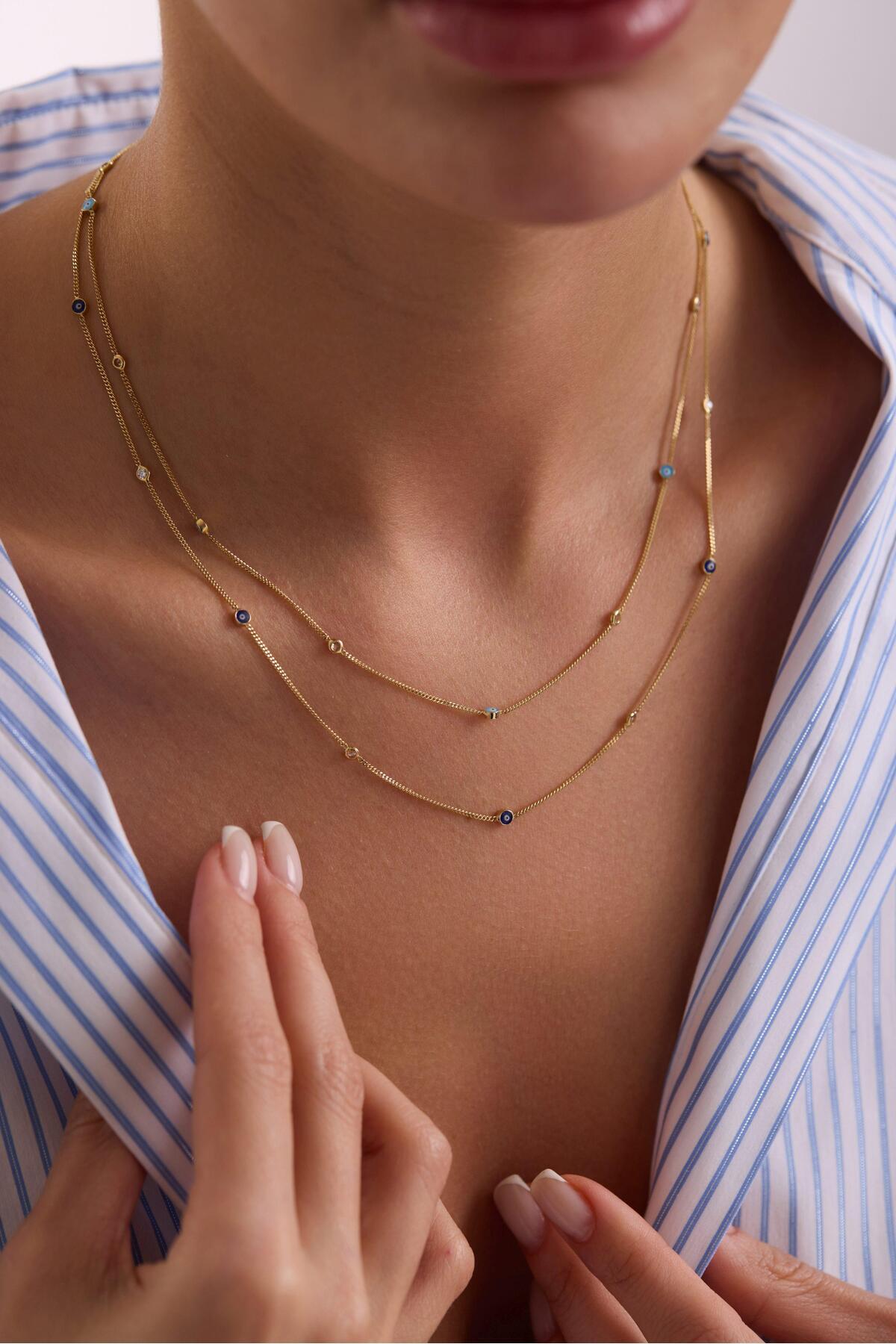 14 Ayar Mavi Taşlı Kombin Altın Kolye 14 Ayar Mavi Taşlı Kombin Altın Kolye BST0542 تک سایز