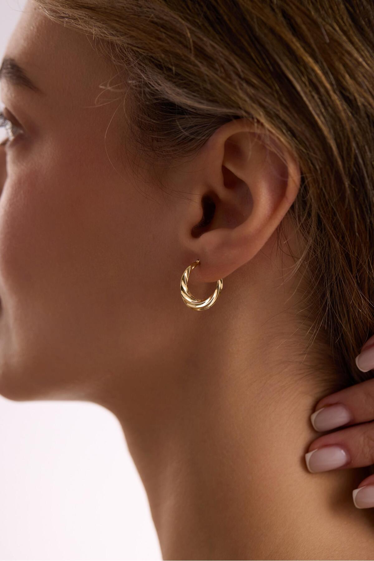 14 Ayar Dalgalı Altın Halka Küpe 14 Ayar Dalgalı Altın Halka Küpe LZ0554 تک سایز