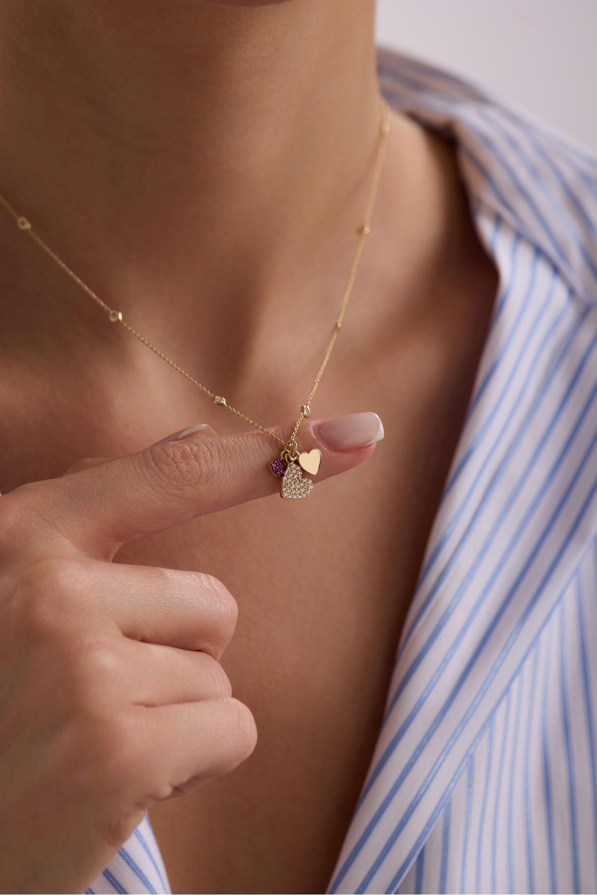14 Ayar Taşlı Kalp Sallantılı Altın Kolye 14 Ayar Taşlı Kalp Sallantılı Altın Kolye BST0524 تک سایز