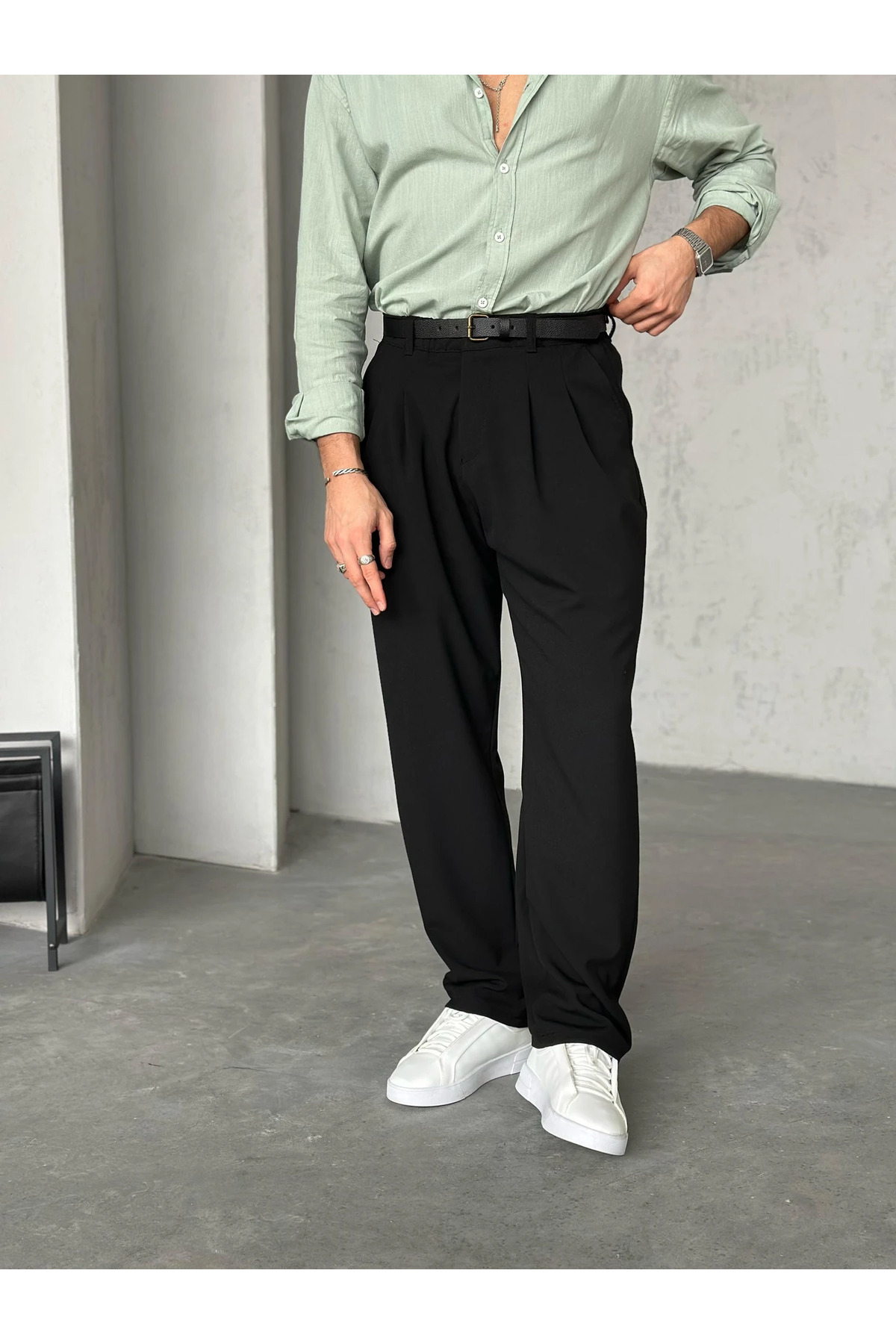 Erkek Siyah Çift Pileli Rahat Kesim Beli Lastikli Bol Paça Baggy Pantolon ALBERT-1988 Erkek Siyah Çift Pileli Rahat Kesim Beli Lastikli Bol Paça Baggy Pantolon ALBERT-1988 2XL