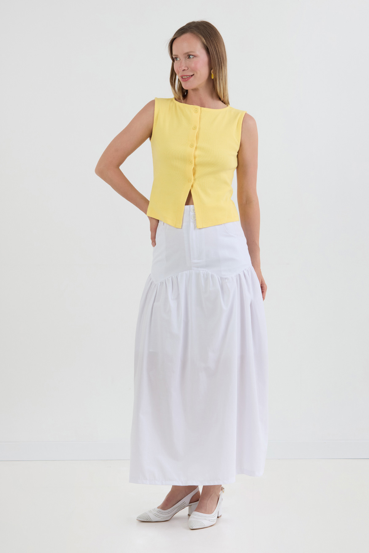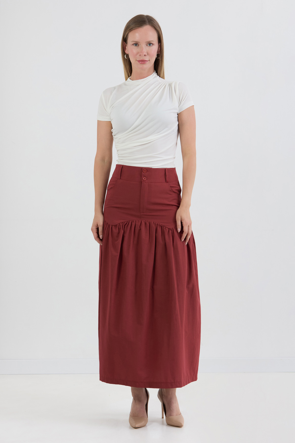 Düğmeli Cepli Terikoton Etek Düğmeli Cepli Terikoton Etek 25YGB8008128813 L