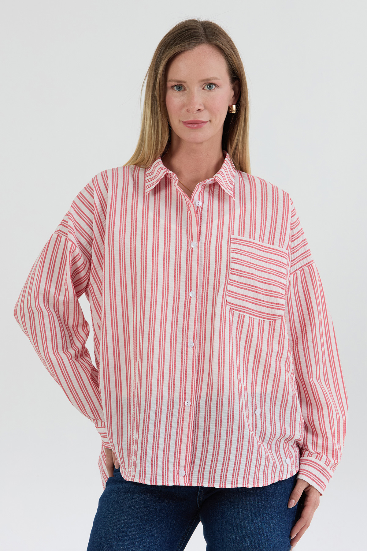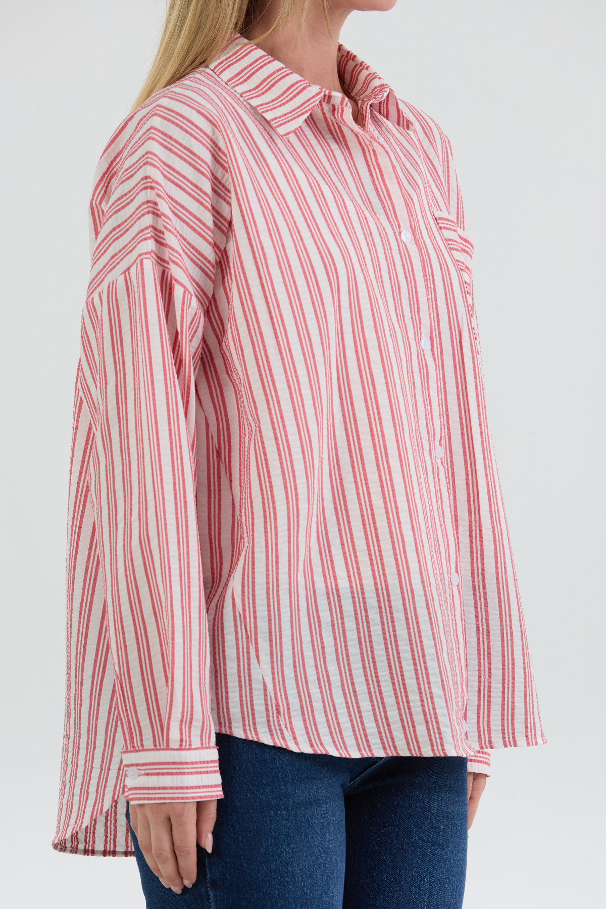 Çizgili Body Detaylı Oversize Gömlek Çizgili Body Detaylı Oversize Gömlek 25YGB4374129860 XL