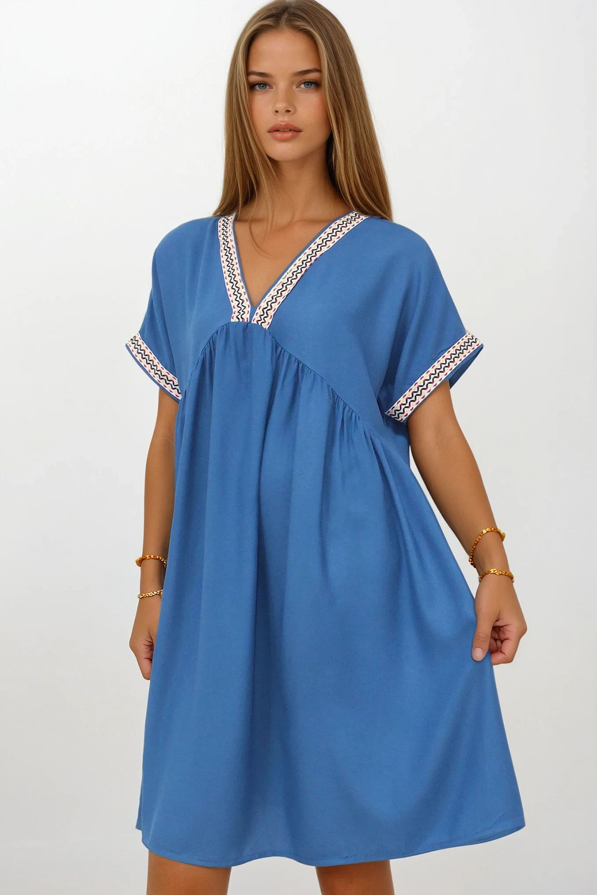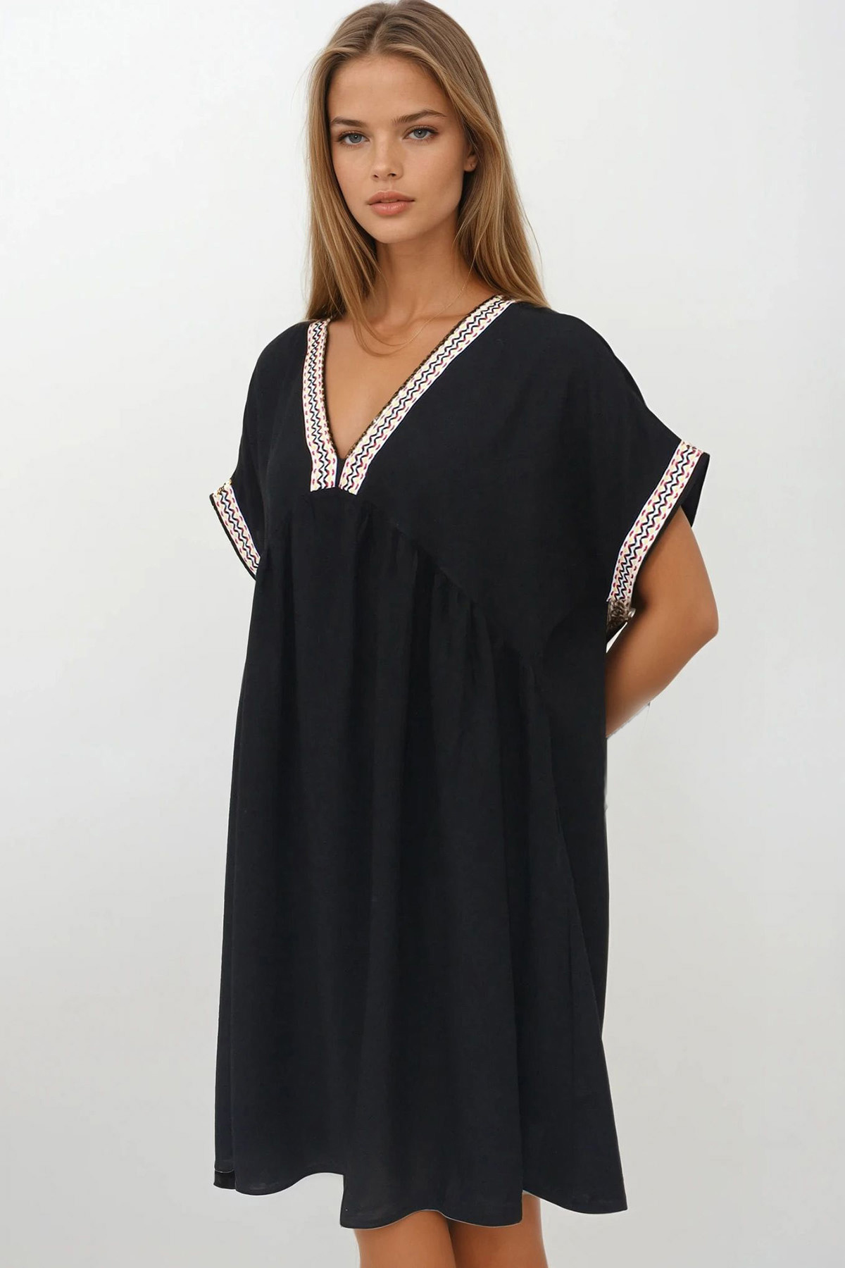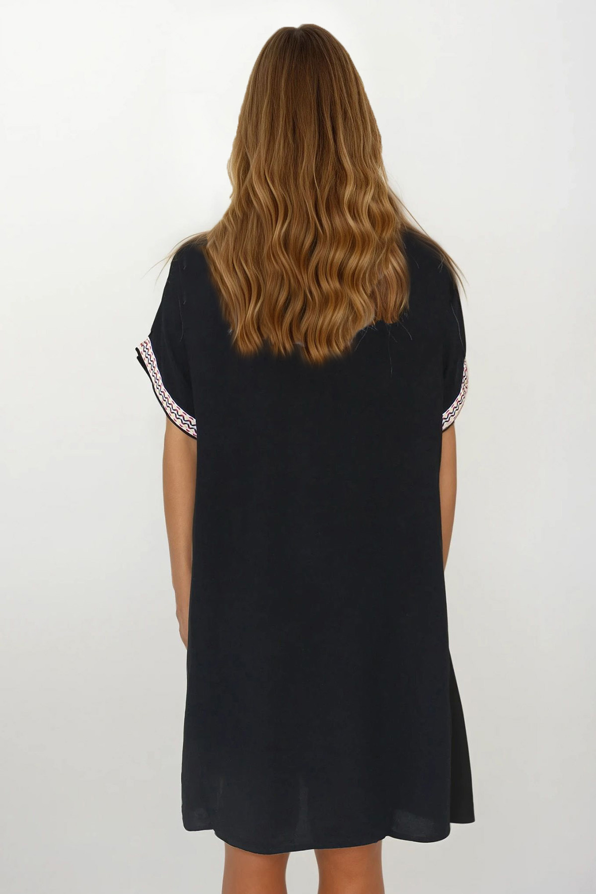 Kadın Siyah V Yaka Kısa Kollu Midi Boy Rahat Kesim Elbise Vs00272 Kadın Siyah V Yaka Kısa Kollu Midi Boy Rahat Kesim Elbise Vs00272 VS00272 L/XL